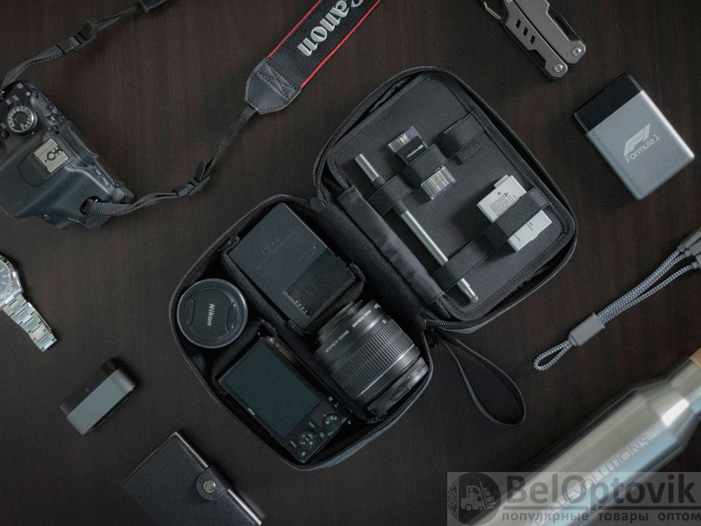 Водоотталкивающая и стойкая к пятнам ткань. Можно менять конфигурацию хранения внутри благодаря разделителям на липучках. Комплектуется 2мя съемными шильдами под нанесение вашего логотипа - металлическим и из эко кожи.