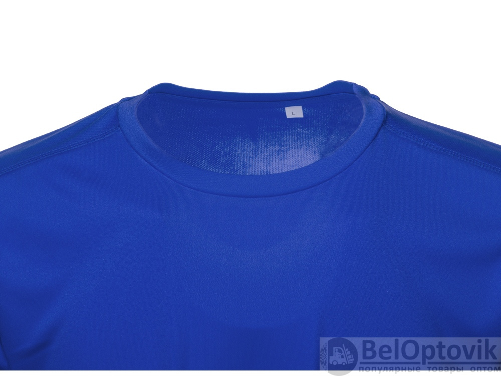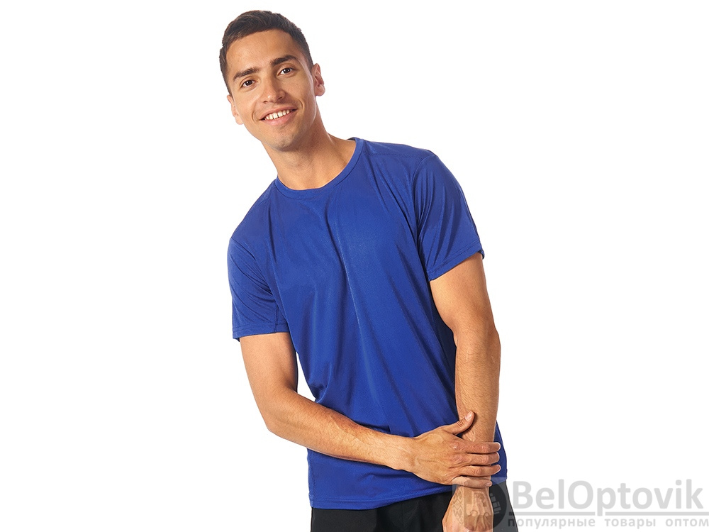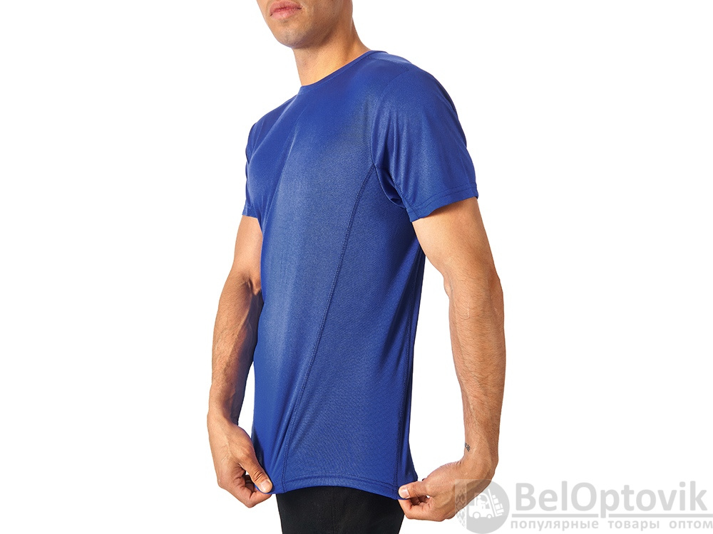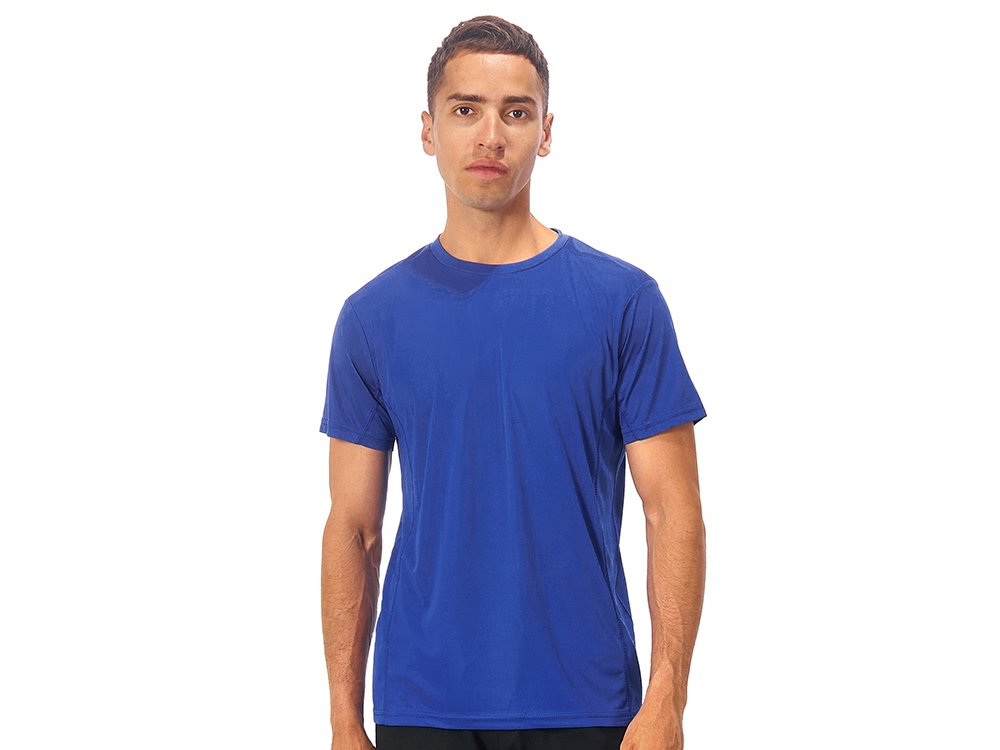 Мужская спортивная футболка выполнена из двух разных видов полотна: спинка и перед из интерлока имеют гладкую поверхность, а декоративные вставки выполнены из спортивной сетки ячеистой структуры. Благодаря наличию таких вставок воздух свободно проникает под футболку, охлаждая кожу во время спортивных нагрузок.