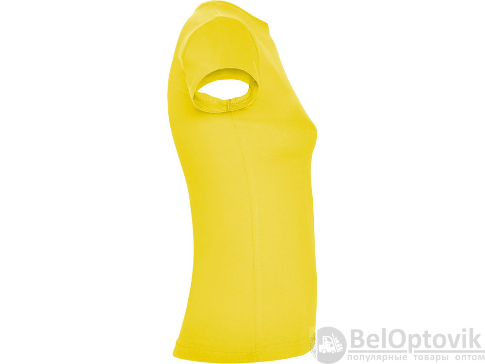Приталенная женская футболка с боковыми швами и круглым вырезом горловины, двухслойный риб 1х1. Широкая цветовая палитра.