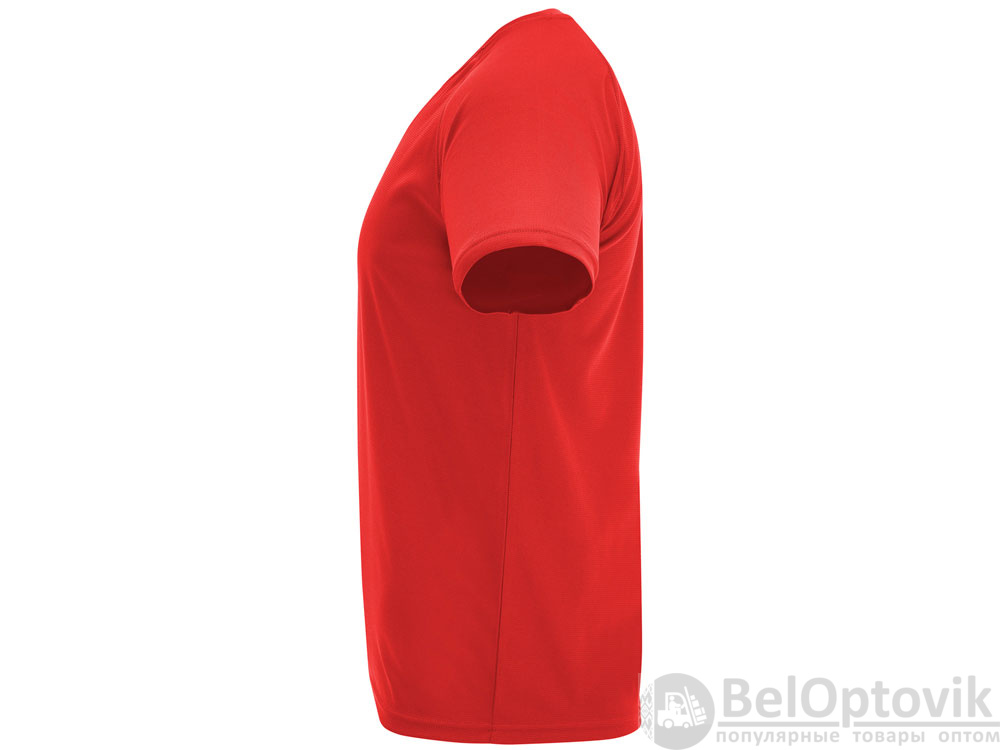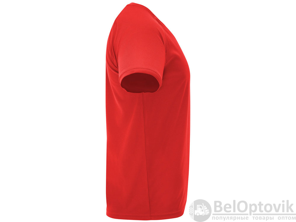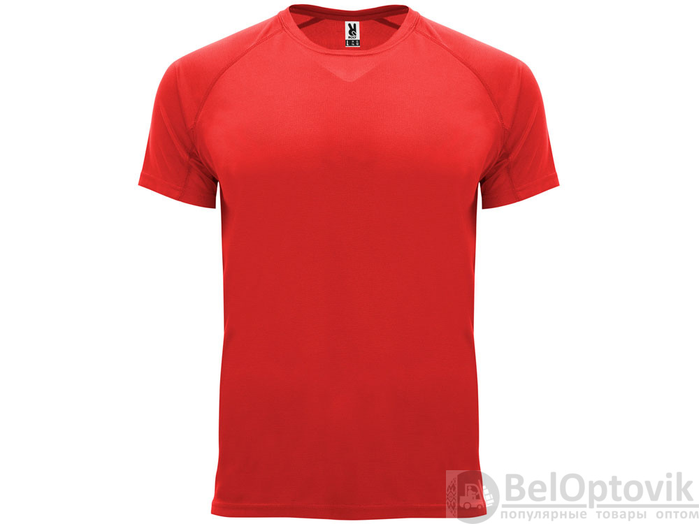Спортивная футболка с коротким рукавом реглан. Круглый вырез горловины с отделкой плоским швом. Рукав сложного кроя для обеспечения дополнительного удобства при занятиях спортом. Отделка плоским швом с застилом по пройме и рукавам.