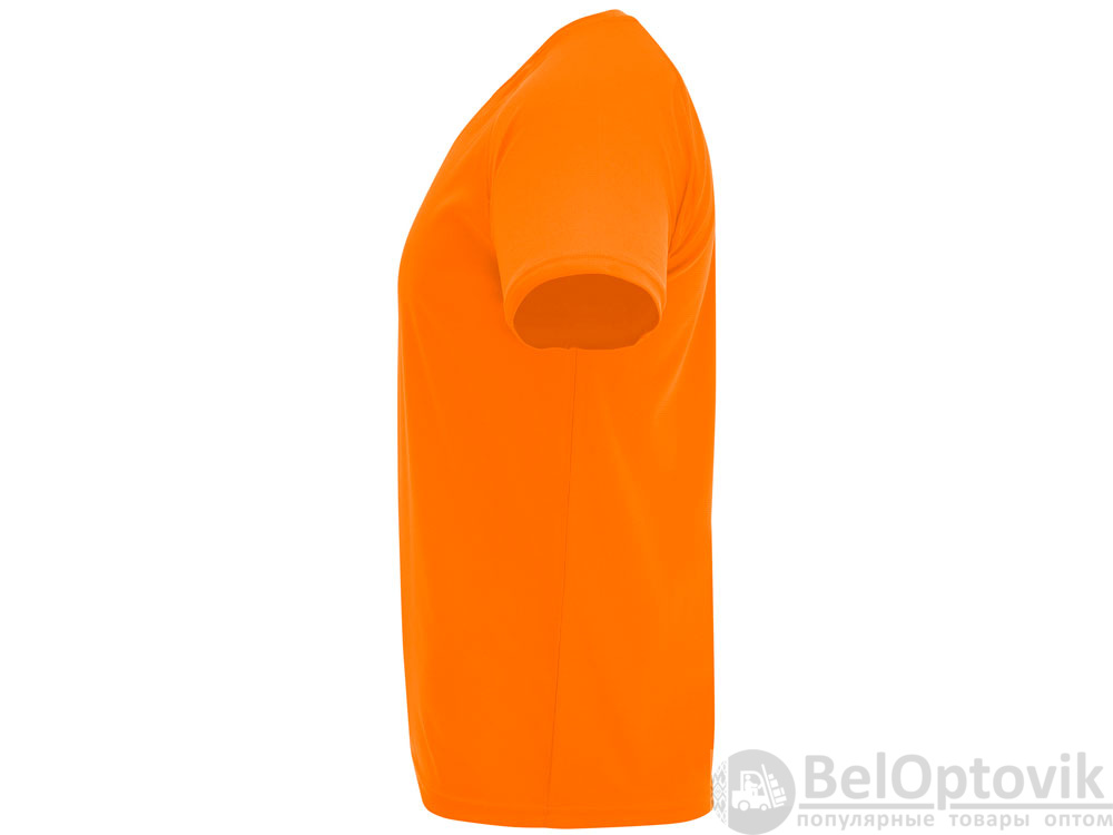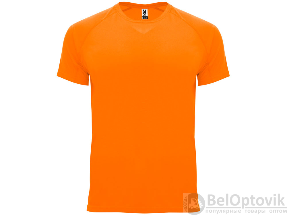 Спортивная футболка с коротким рукавом реглан. Круглый вырез горловины с отделкой плоским швом. Рукав сложного кроя для обеспечения дополнительного удобства при занятиях спортом. Отделка плоским швом с застилом по пройме и рукавам.