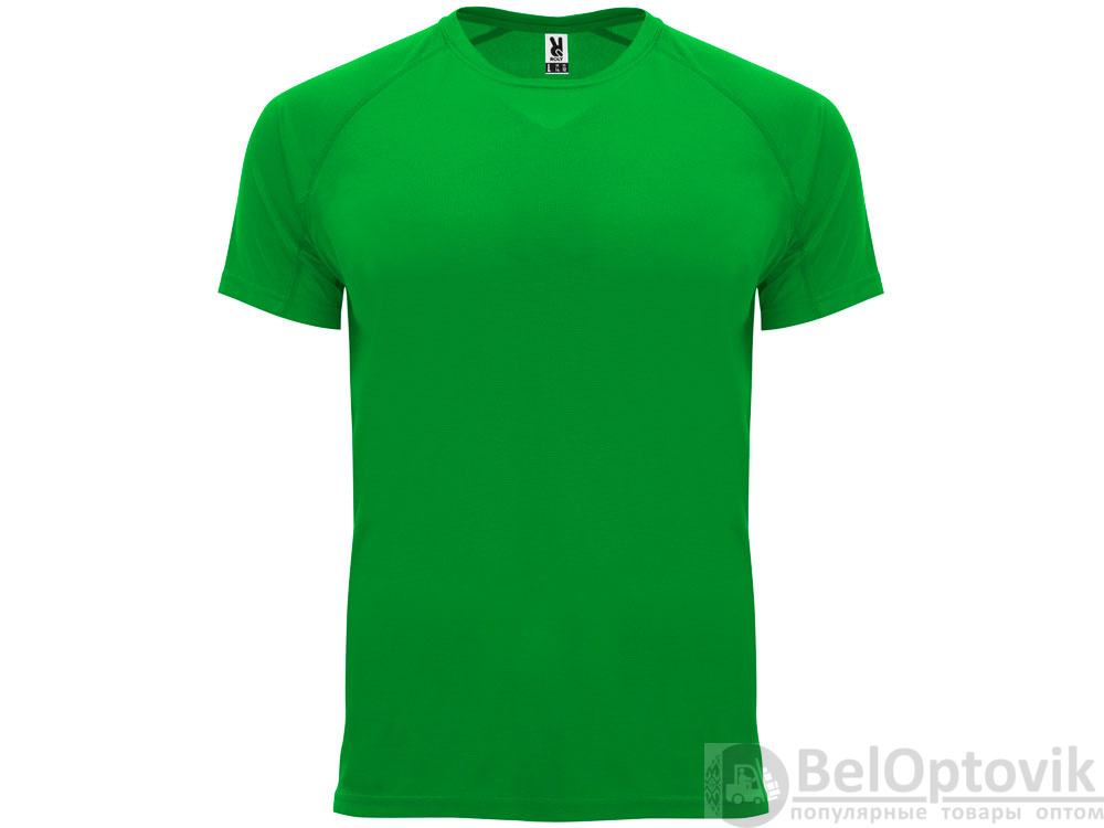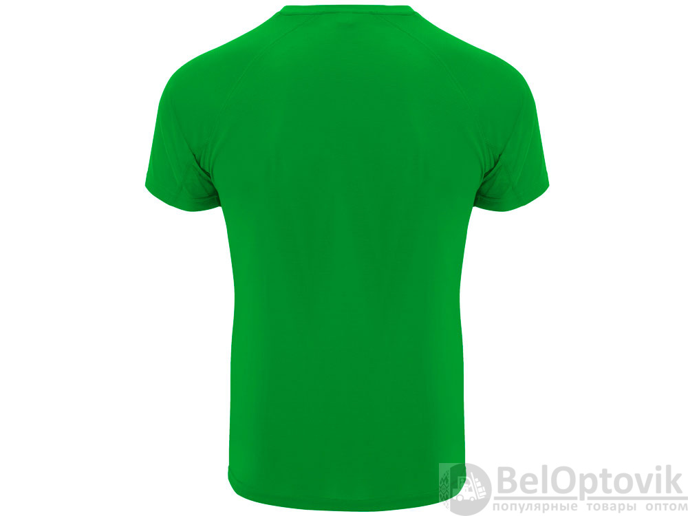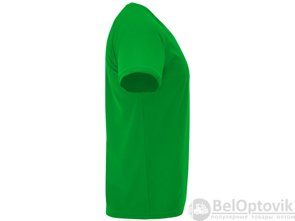 Спортивная футболка с коротким рукавом реглан. Круглый вырез горловины с отделкой плоским швом. Рукав сложного кроя для обеспечения дополнительного удобства при занятиях спортом. Отделка плоским швом с застилом по пройме и рукавам.