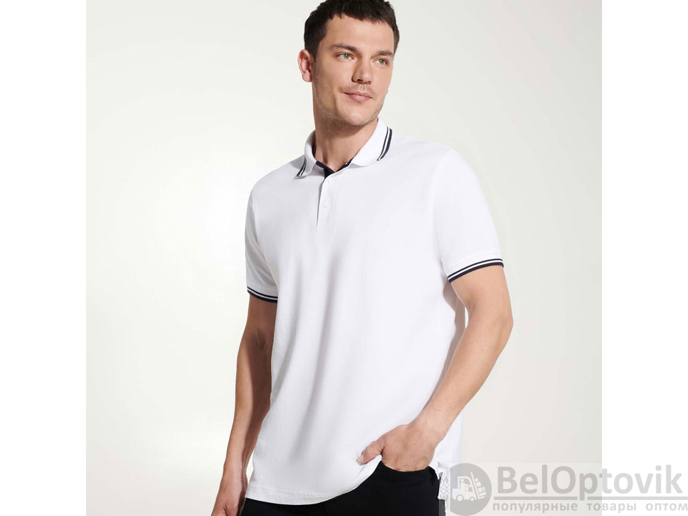 Поло с коротким рукавом. Воротник и манжеты из риба 1х1 с отделкой двойной контрастной плоской. Внутренняя планка контрастного цвета, застежка на 3 пуговицы. Разрезы в боковых швах. Премиальное плотное пике 230 гр.