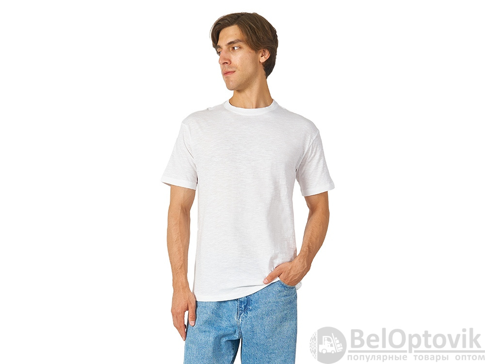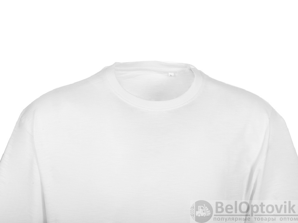 Полотно футболки имеет необычную структуру - с протяжками, но при этом гладкую поверхность, что обеспечивает идеальную поверхность для нанесения: прямая печать, трафаретная или термотрансфер прекрасно ложатся на такое полотно. Декоративная отстрочка по низу рукавов и изделия, а также отстрочка по горловине позволяют футболке дольше сохранять форму.