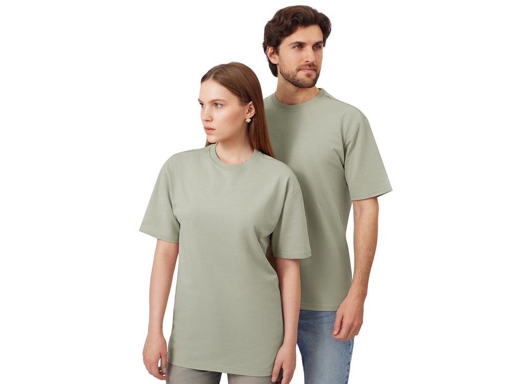 Футболка выполнена из хлопкового френч терри с петельками на изнаночной стороне. Горловина обработана рибом 2х2 и дополнительно усилена тесьмой-елочкой с внутренней стороны спинки. Гладкая поверхность полотна позволяет идеально нанести изображение. Футболка расслабленного силуэта для прогулок и других видов приятного времяпрепровождения