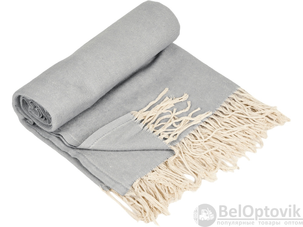 Плотный мягкий плед из натурального хлопка украшен бахромой. Можно использовать как теплое одеяло или как покрывало для украшения интерьера.