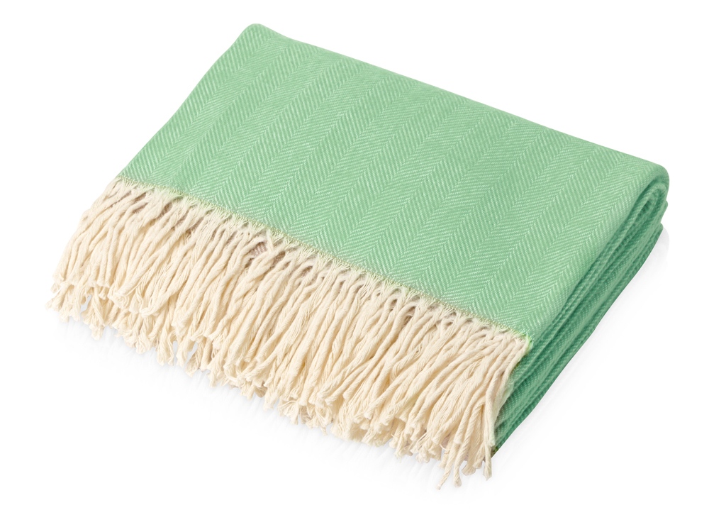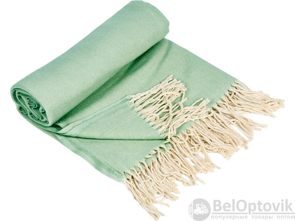 Плотный мягкий плед из натурального хлопка украшен бахромой. Можно использовать как теплое одеяло или как покрывало для украшения интерьера.