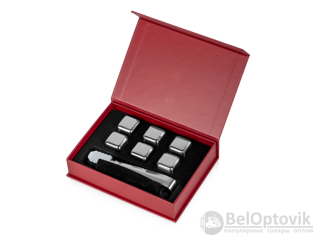 Набор для виски Skye состоит из шести охлаждающих камней из нержавеющей стали, бархатистого мешочка и удобных щипцов. Сет упакован в качественную коробку с магнитной крышкой винного цвета, а сверху надевается шубер с полиграфией, который можно заменить на какой-либо другой.