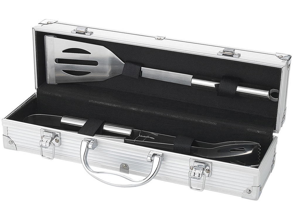 Набор для барбекю 3 предмета. Лопатка для рыбы, щипцы и вилка в кейсе.