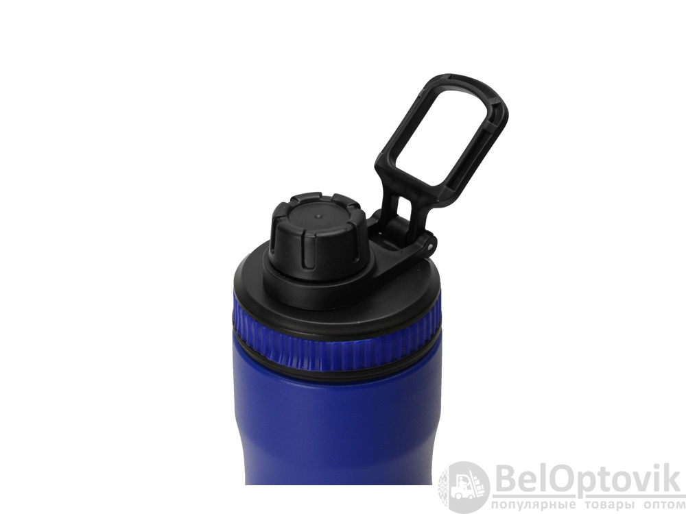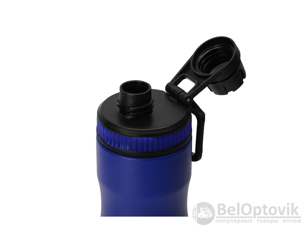 Крышка оснащена складной ручкой-держалкой, которая может быть использована для подвешивания или переноски, а также нетеряемым колпачком. Широкое питьевое отверстие позволяет быстро утолить жажду во время занятий спортом. Рельефное силиконовое кольцо по краю крышки поможет вам быстро и легко отвинтить ее от бутылки.