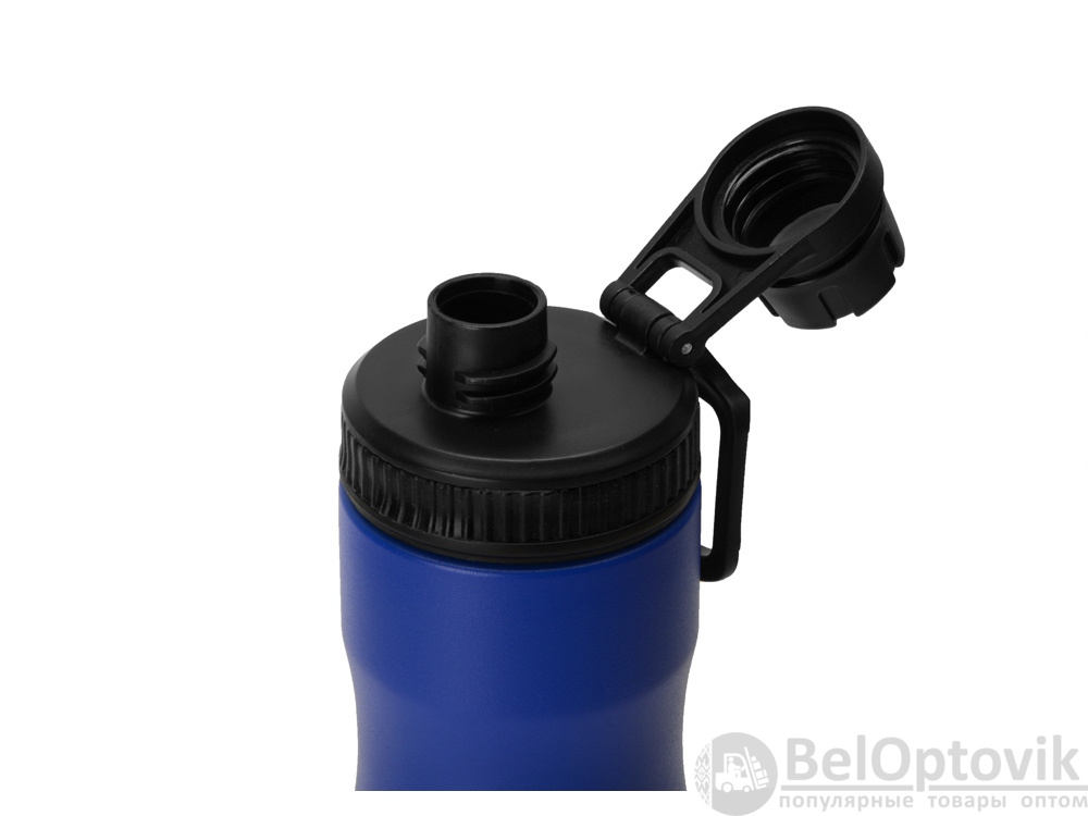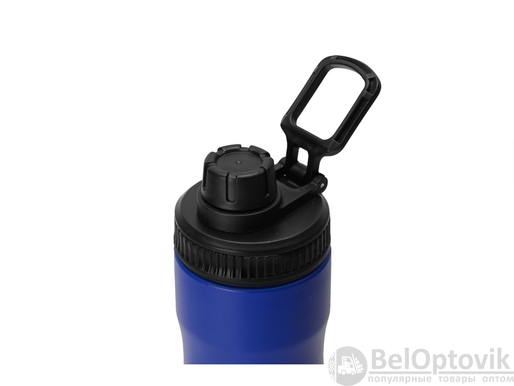 Крышка оснащена складной ручкой-держалкой, которая может быть использована для подвешивания или переноски, а также нетеряемым колпачком. Широкое питьевое отверстие позволяет быстро утолить жажду во время занятий спортом. Рельефное силиконовое кольцо по краю крышки поможет вам быстро и легко отвинтить ее от бутылки.