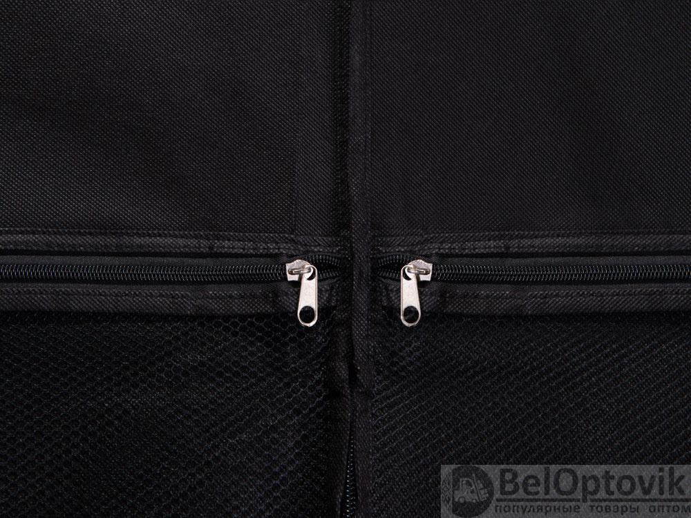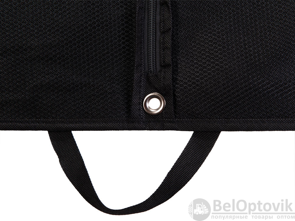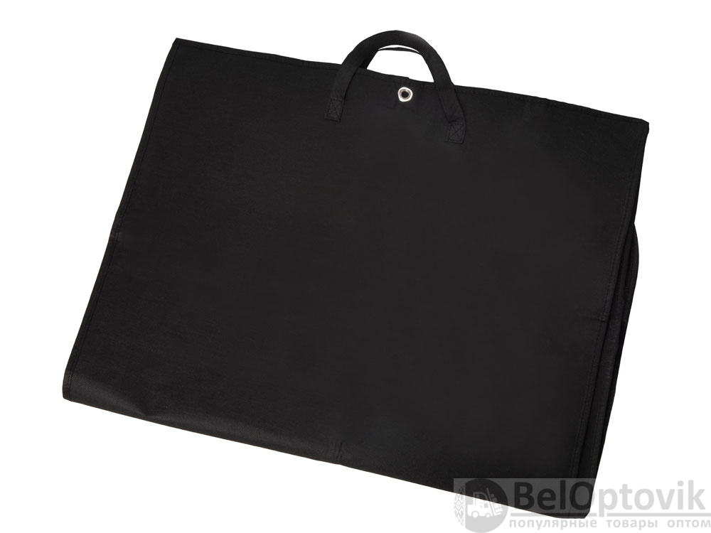 Дорожный чехол из нетканого материала для одежды, который помогает перевозить одежду чистой и без складок. В сложенном виде напоминает форматом портфель, легко переносится с места на место благодаря удобным ручкам. Чехол имеет отверстие для крючка вешалки, на которую вы можете повесить одежду перед тем, как поместить ее внутрь.