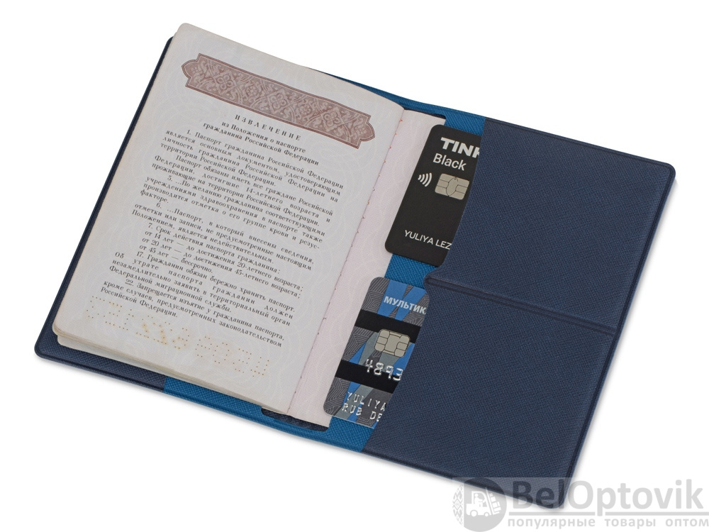 Внутри имеется три кармашка, два из которых предназначены для карт, а третий под дополнительные документы: СНИЛС и полис.