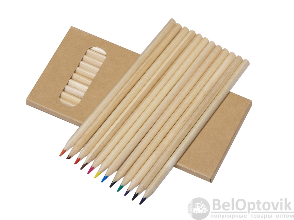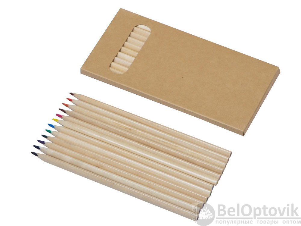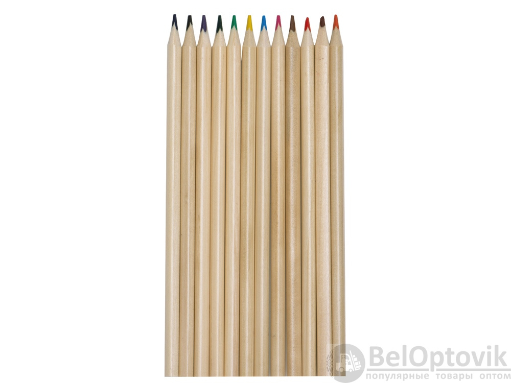 Набор из 12 трехгранных цветных карандашей твердостью ТМ в натуральном корпусе. Нанесение можно сделать на всей поверхности упаковки