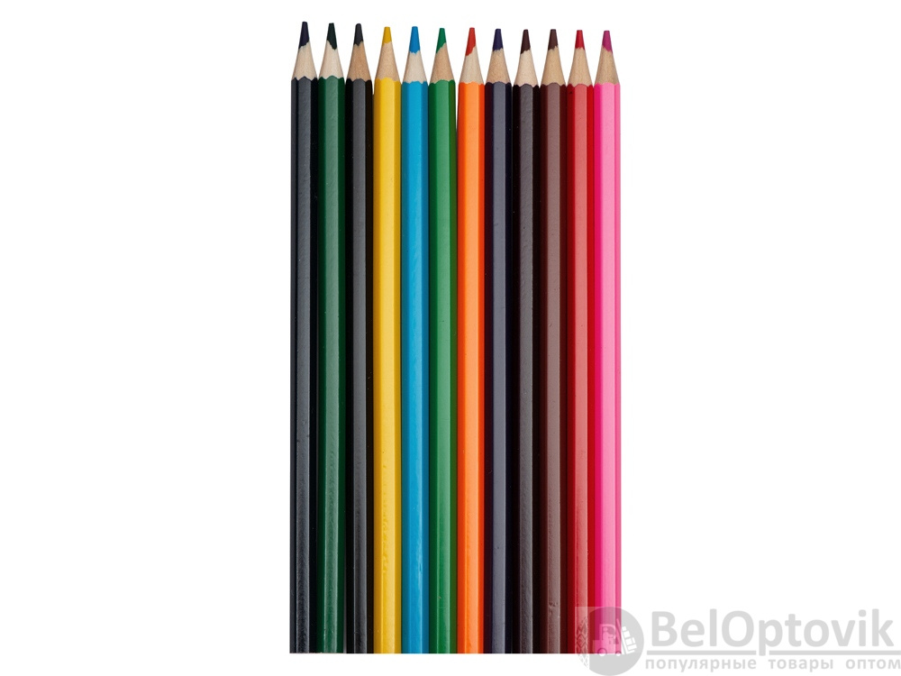 Набор из 12 шестигранных цветных карандашей твердостью ТМ. Нанесение можно сделать на всей поверхности упаковки