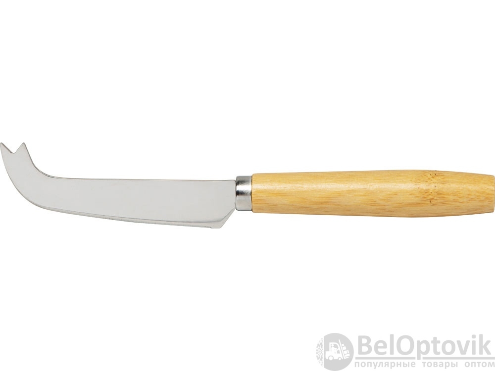 Классический нож для сыра имеет изогнутую форму, благодаря чему вам не придется держать его на весу — просто поставьте лезвие на разделочную поверхность и слегка нажмите на рукоятку, это обеспечит легкий ход. Раздвоенный кончик позволяет накалывать кусочки и разделять ломтики сыра, не касаясь его руками.