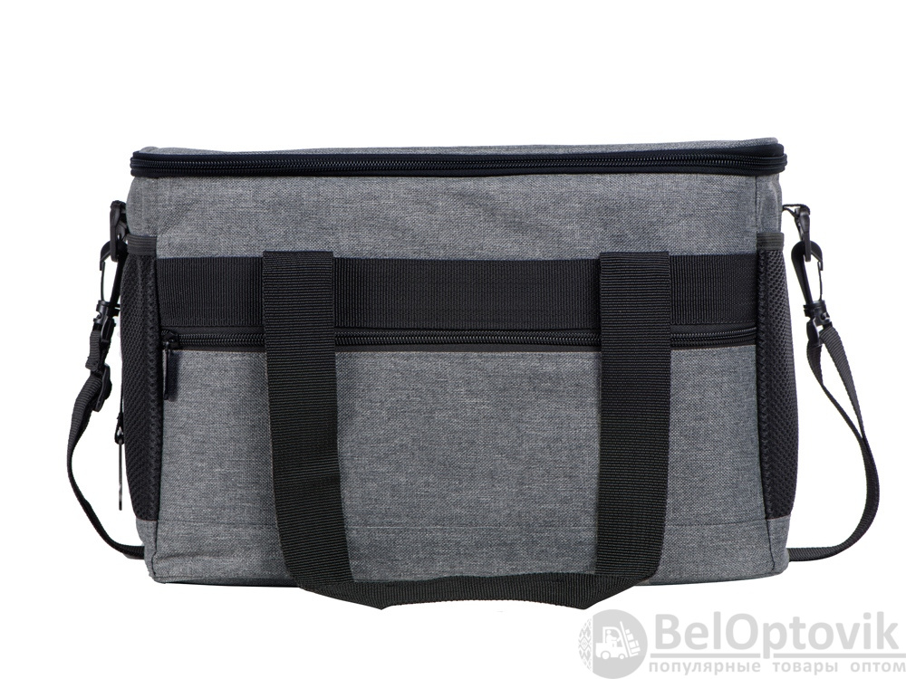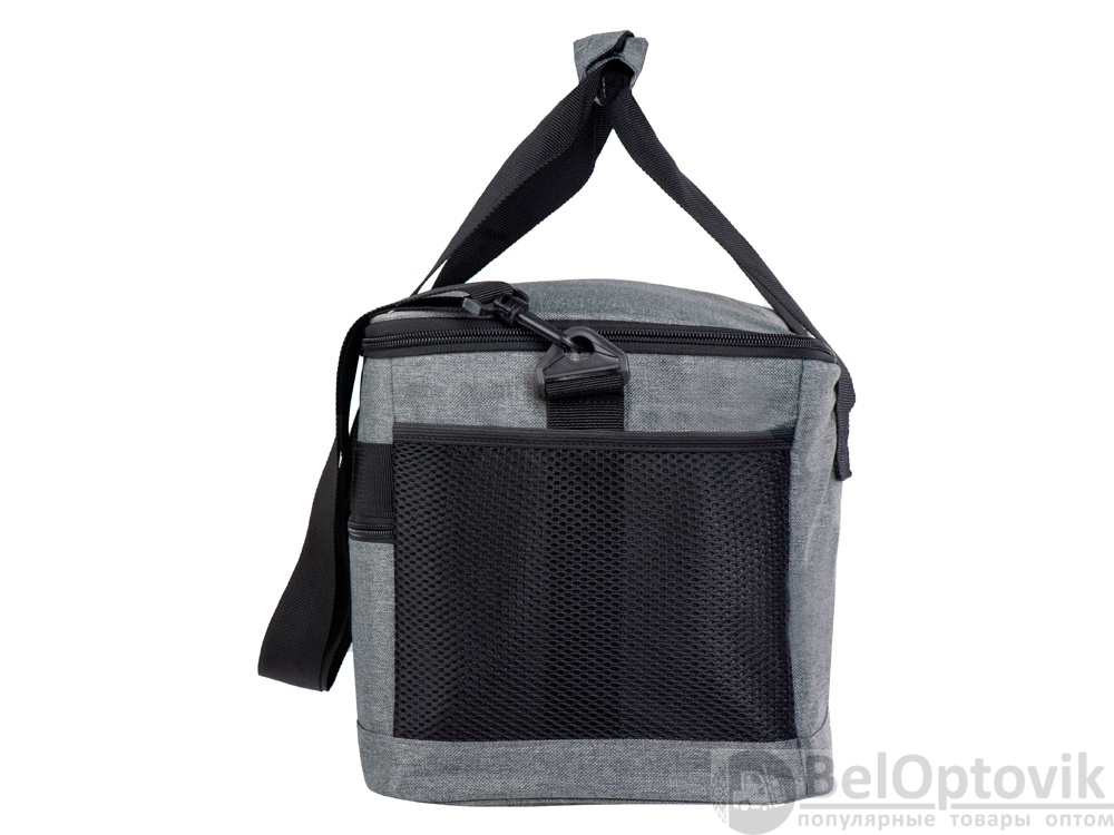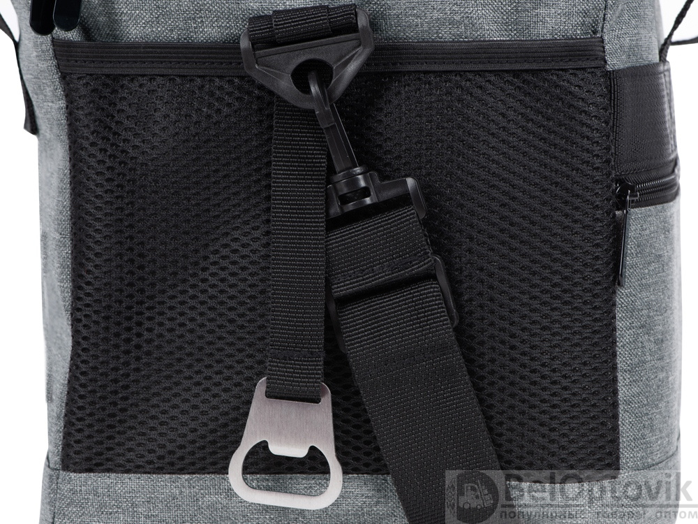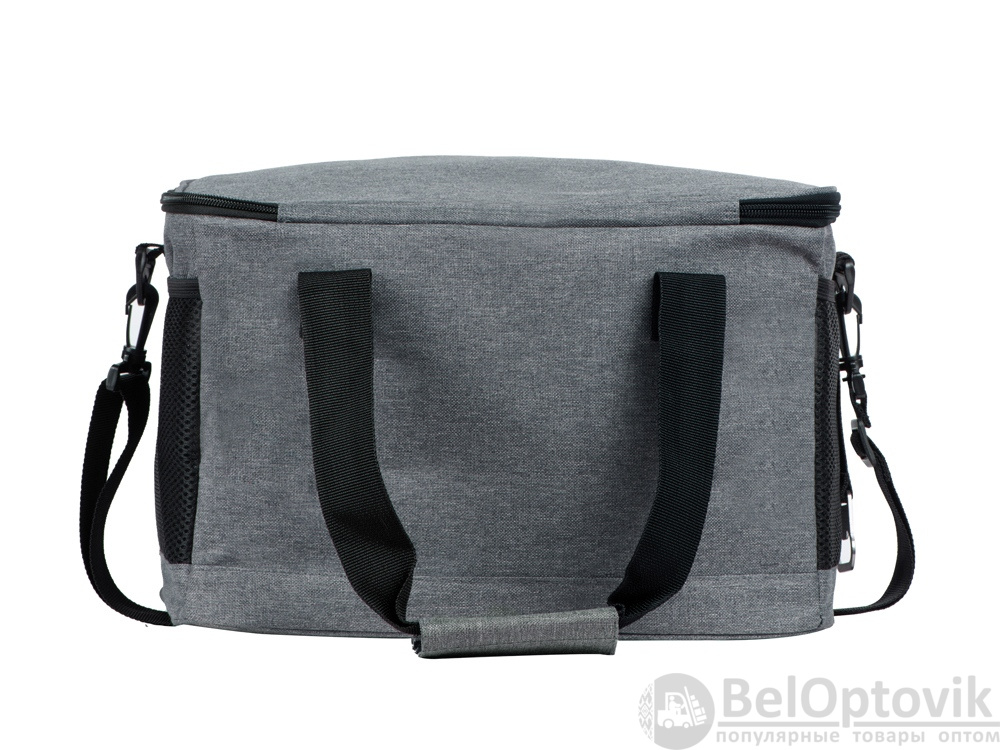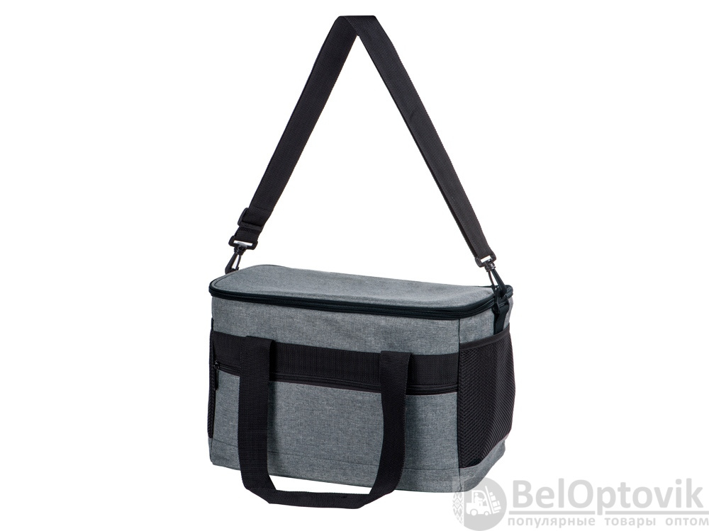 Вместительная сумка-холодильник со специальной конструкцией дна, предотвращающей протекание наружу жидкости от размораживания. Поверхность сумки всегда остается сухой. Основное отделение и карман спереди на молнии. Сбоку 2 сетчатых кармана. Съемный плечевой ремень регулируется по длине. Короткие ручки фиксируются вместе застежкой-липучкой. В комплекте открывалка для бутылок.