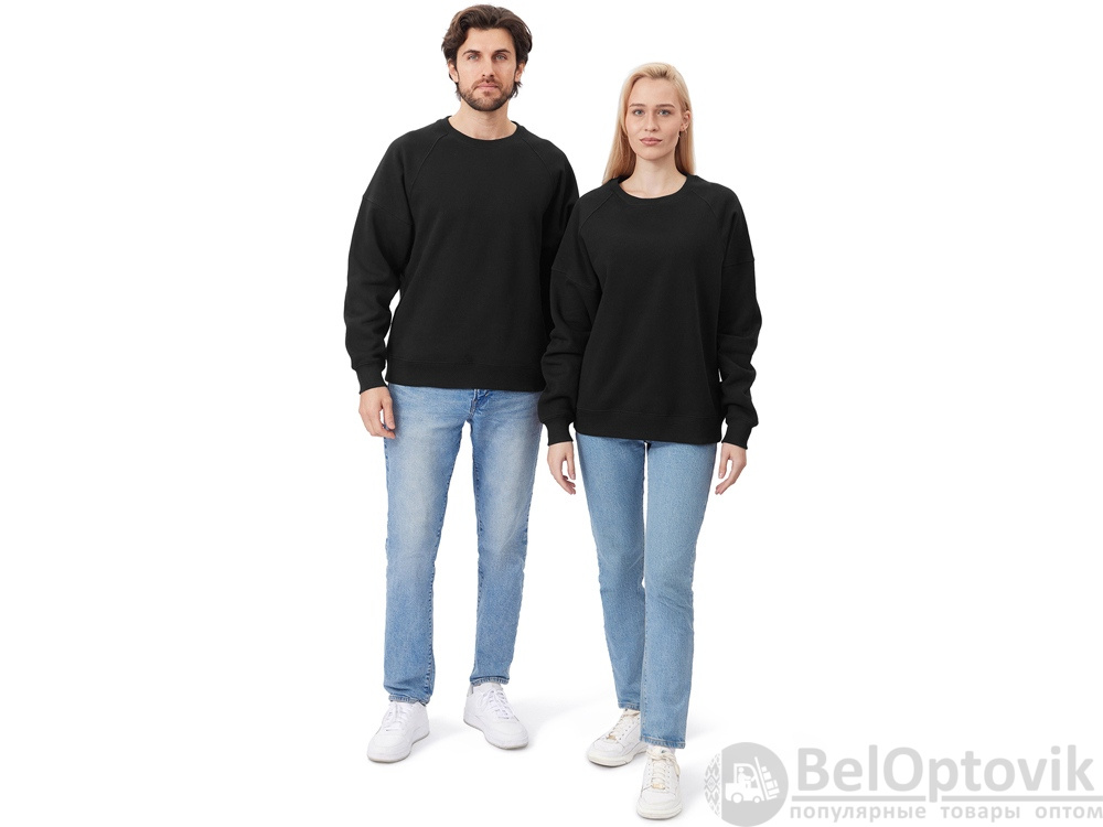 Главная особенность этого свитшота оверсайз — необычный рукав из двух частей: верхней — реглан до середины предплечья — и нижней, которая заканчивается резинкой. Благодаря такому необычному крою свитшот сидит комфортно по фигуре.