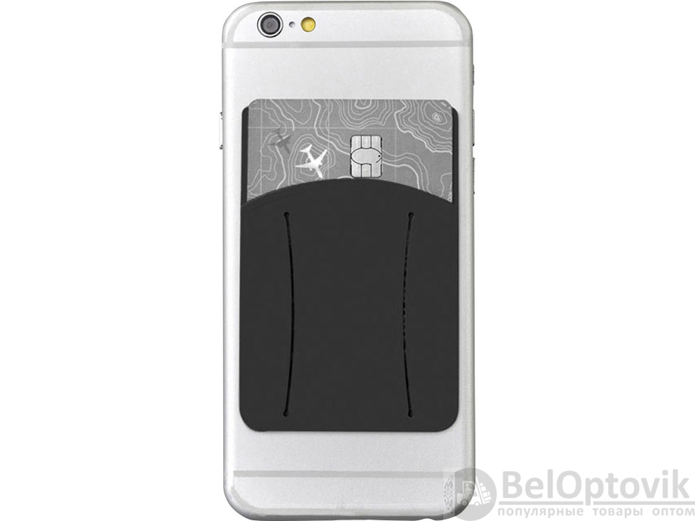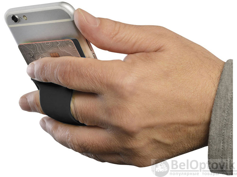 Силиконовый картхолдер для телефона с отверстием для пальца. Картхолдер можно легко прикрепить практически ко всем смартфонам с плоской панелью сзади при помощи липкой ленты. В него можно поместить кредитную карту/ идентификационную карту/ карту-ключ от номера / 5 визиток или банкноты. Отверстие для пальца для более удобного удержания телефона.