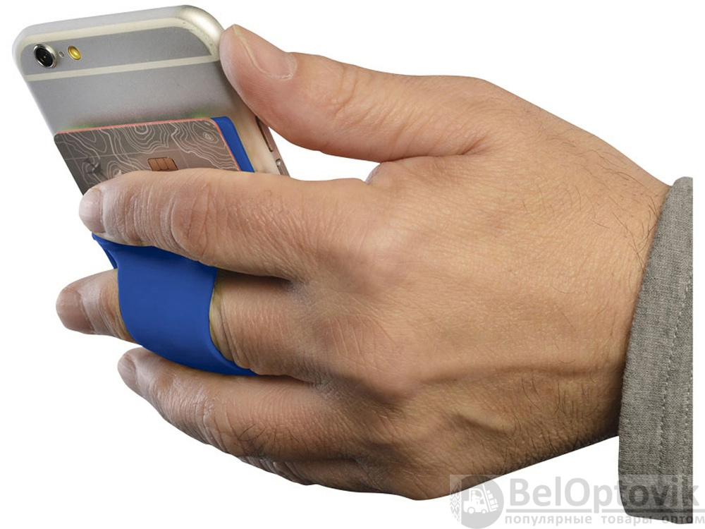 Силиконовый картхолдер для телефона с отверстием для пальца. Картхолдер можно легко прикрепить практически ко всем смартфонам с плоской панелью сзади при помощи липкой ленты. В него можно поместить кредитную карту/ идентификационную карту/ карту-ключ от номера / 5 визиток или банкноты. Отверстие для пальца для более удобного удержания телефона.