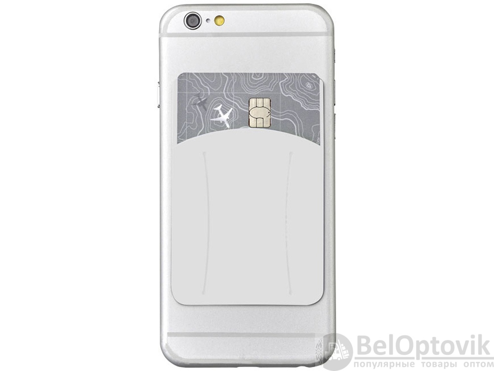 Силиконовый картхолдер для телефона с отверстием для пальца. Картхолдер можно легко прикрепить практически ко всем смартфонам с плоской панелью сзади при помощи липкой ленты. В него можно поместить кредитную карту/ идентификационную карту/ карту-ключ от номера / 5 визиток или банкноты. Отверстие для пальца для более удобного удержания телефона.