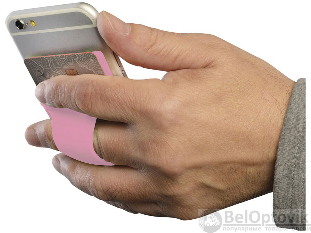 Силиконовый картхолдер для телефона с отверстием для пальца. Картхолдер можно легко прикрепить практически ко всем смартфонам с плоской панелью сзади при помощи липкой ленты. В него можно поместить кредитную карту/ идентификационную карту/ карту-ключ от номера / 5 визиток или банкноты. Отверстие для пальца для более удобного удержания телефона.
