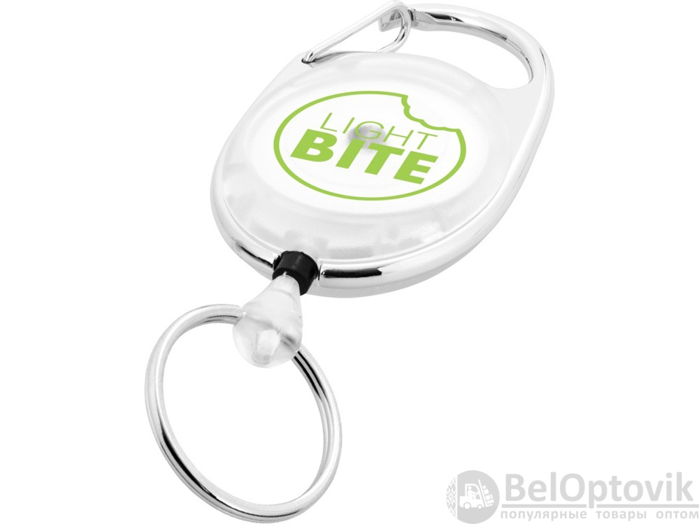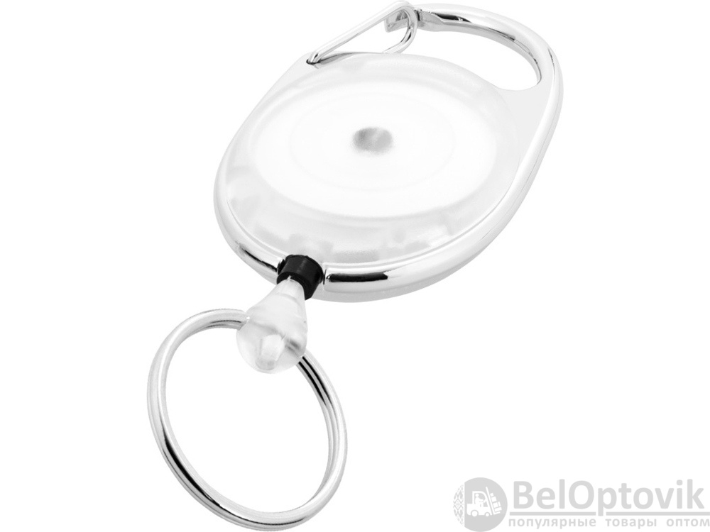 Брелок с ретрактором Demos идеальный предмет для любого офиса, торговой ярмарки, конференции или горнолыжного склона. Роликовая клипса оснащена карабином, а благодаря прочному механизму и шнуру длиной 60 см посетитель может легко прикрепить к нему бейдж.