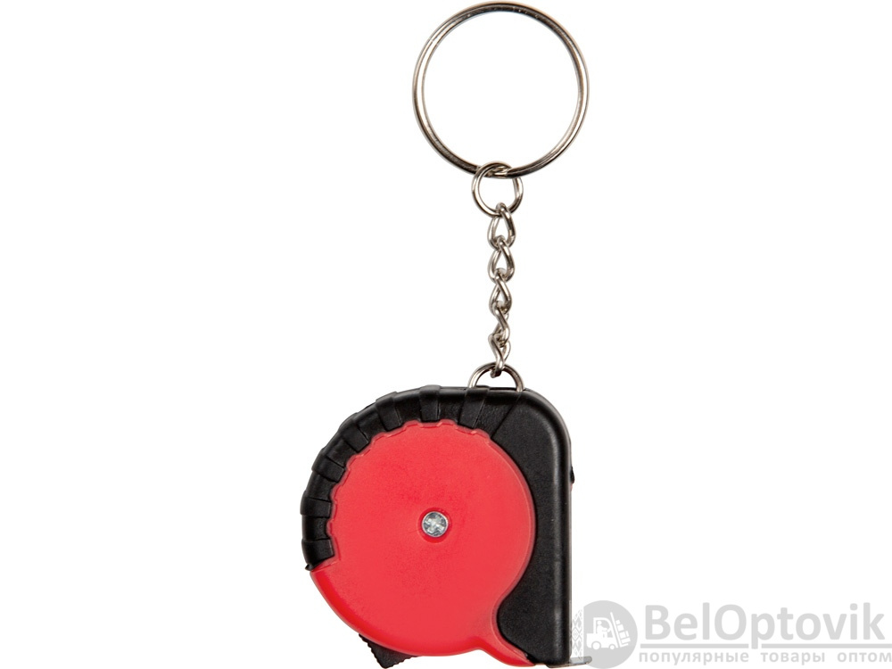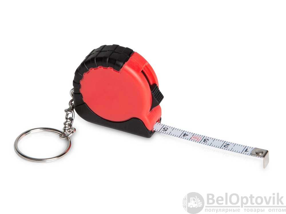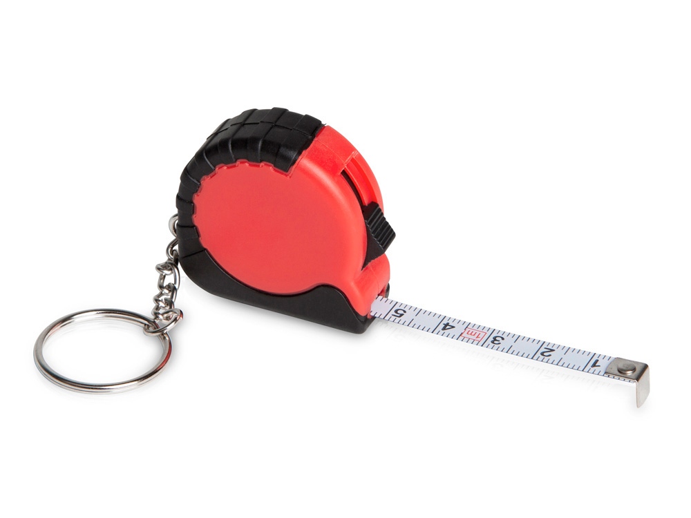 Рулетка длиной 1 м с возвратной пружиной и стопором со шкалой в сантиметрах и дюймах. Кнопка для фиксации ленты.