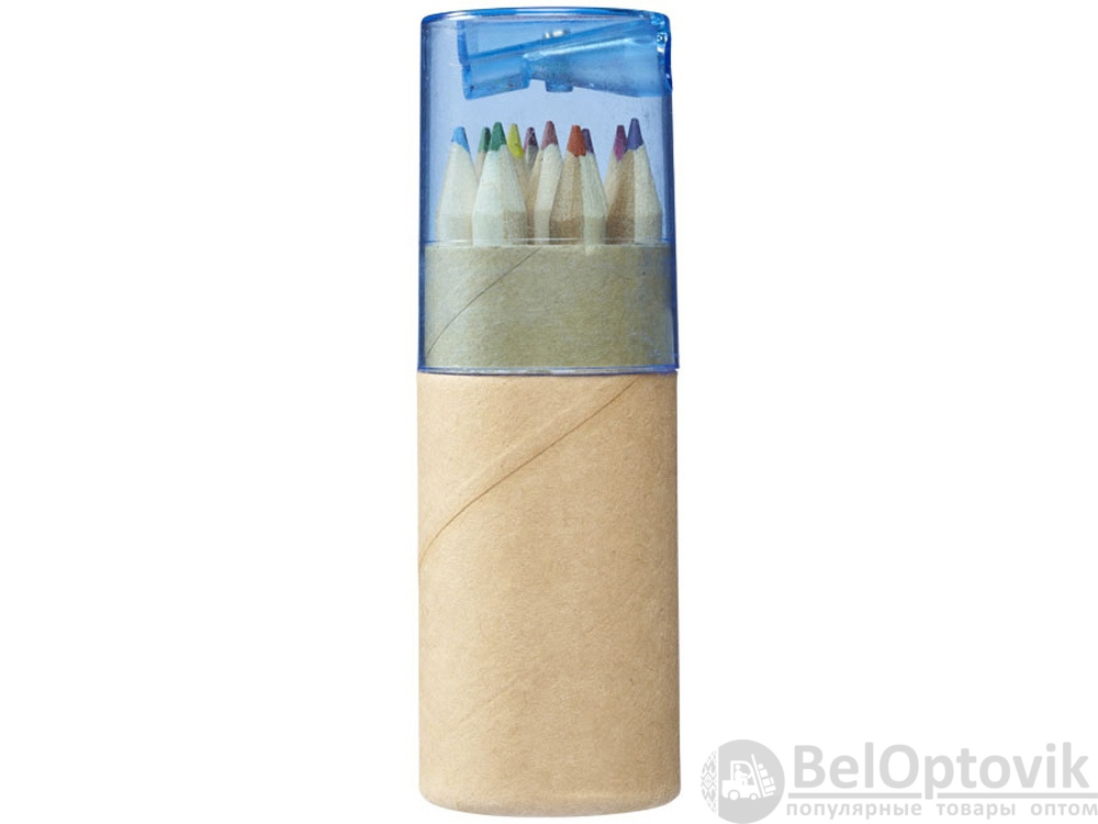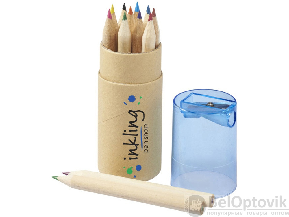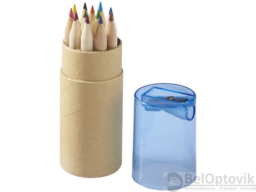 Набор из 12 маленьких карандашей в картонном стакане с точилкой.