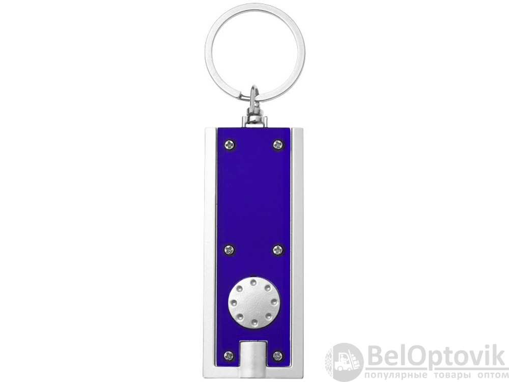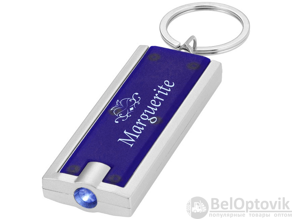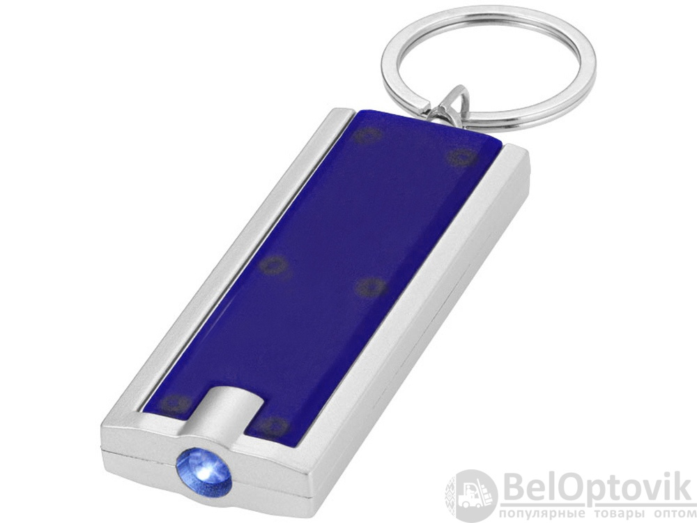 Брелок с ярким светодиодным фонариком с кнопкой. Металлическое кольцо для ключей. Батарейки включены в комплект. АБС-пластик.