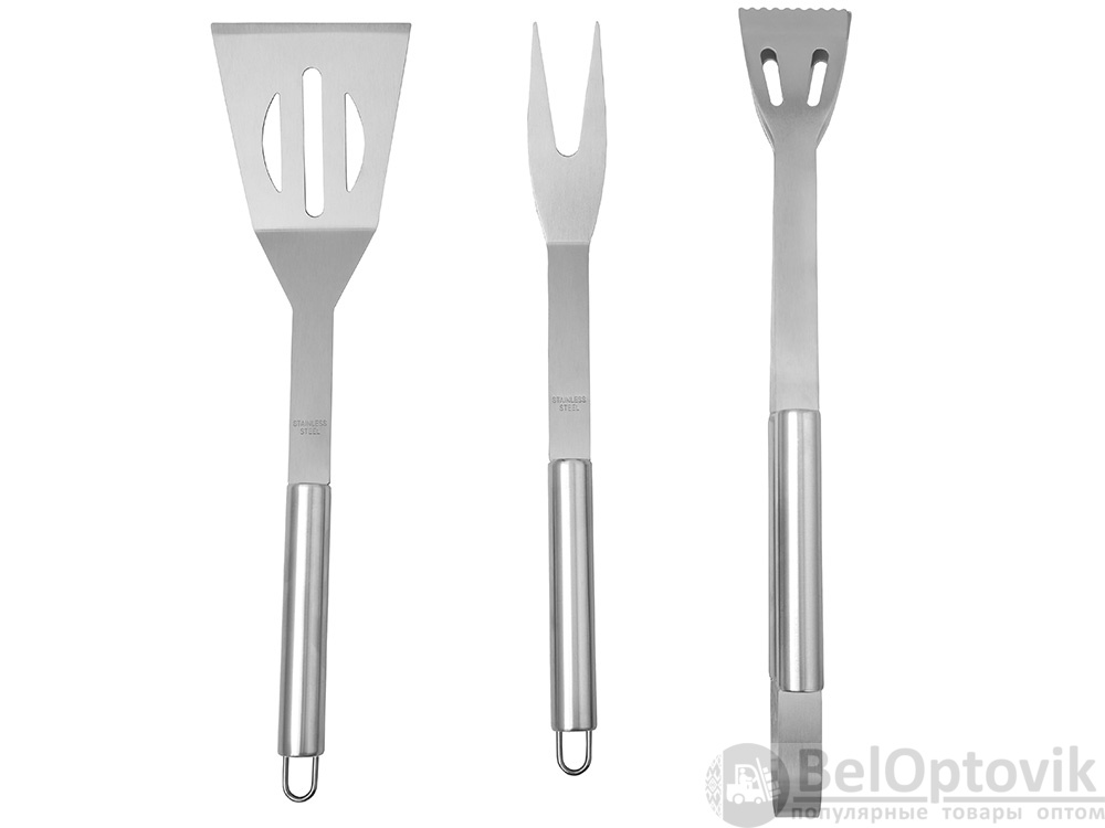 - Комплектность: лопатка 32,4 х 8,5 х 2,9 см, щипцы 34 х 4,8 х 6,2 см, вилка 32 х 3,4 х 1,3 см, алюминиевый кейс 36,9 х 9,9 х 8 см