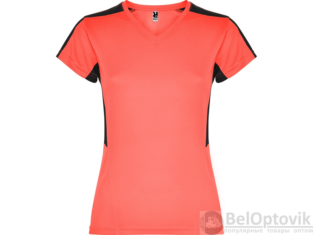 Женская футболка с коротким рукавом. V-образная горловина. Комбинация из 2 полотен контрастного цвета: структурное полотно на полочке и дышащая 3D сетка на плечах и боках.