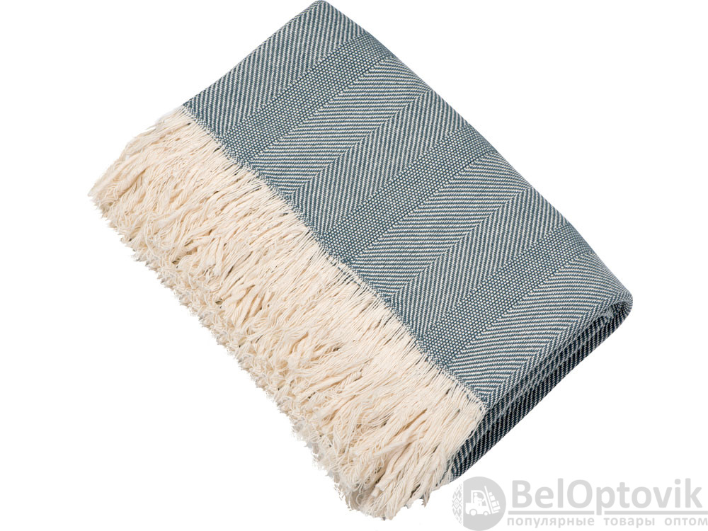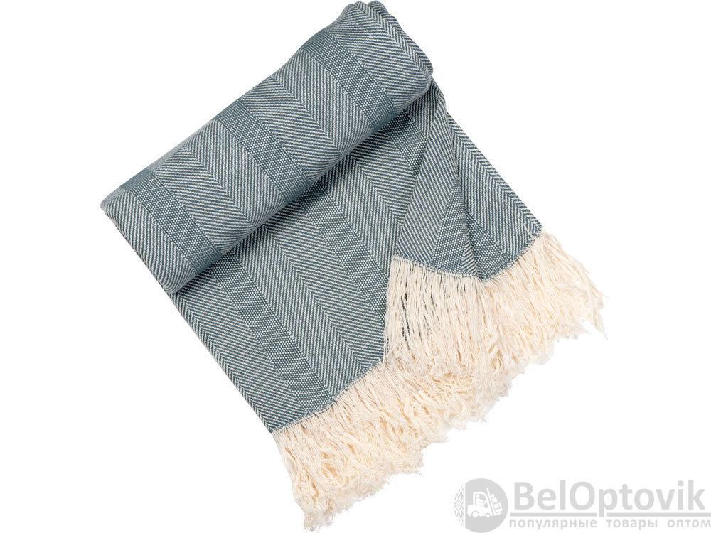 Плотный плед из натурального хлопка с бахромой по бокам. Можно использовать как одеяло или как покрывало для украшения интерьера.