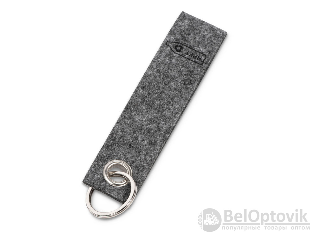 Фетровый брелок натурального серого цвета, сделанный из переработанных материалов (rPET-фетр). Отверстие для металлического кольца окантовано металлическим ободком, который продлит срок использования изделия. Брелок отлично подходит для тех, кто заботится о природе.
