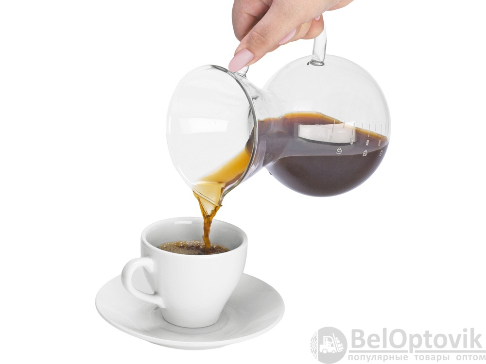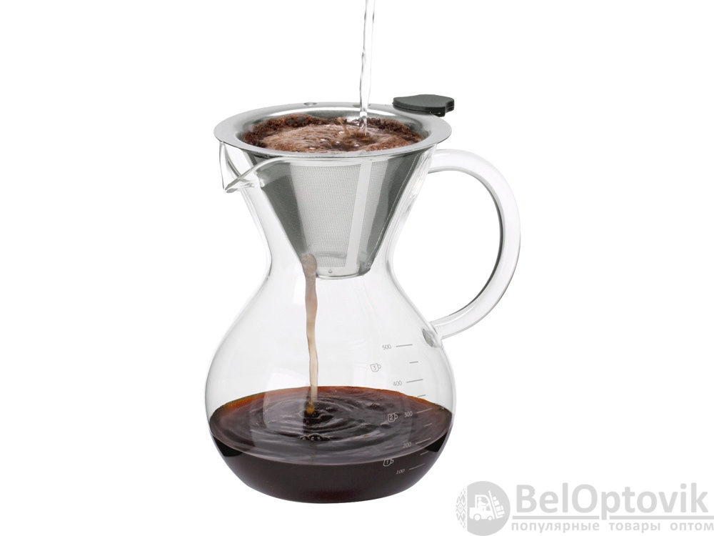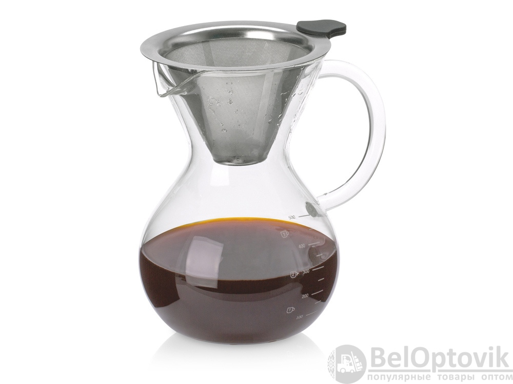 Большой объём позволяет заварить до 500 мл кофе за раз — это две стандартных порции. Жаропрочное боросиликатное стекло отлично переносит перепады температуры, а удобная ручка не нагревается, поэтому можно сразу разливать горячий напиток.