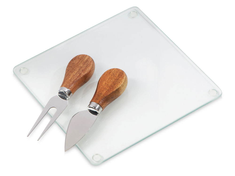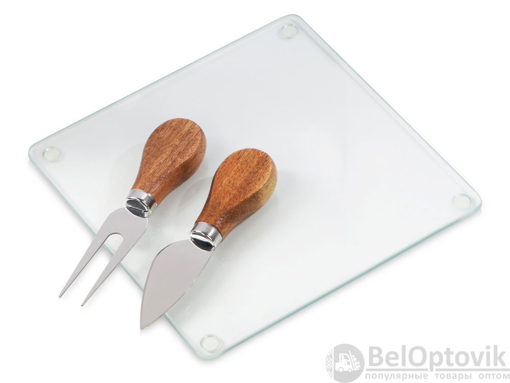 - Комплектность: разделочная доска 17 x17 х 0,7 см, вилка для сыра 12,5 см, нож для сыра 12 см, самоклеящиеся ножки/стопперы