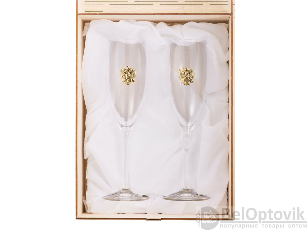 Набор бокалов для шампанского. Благородное флорентийское стекло прекрасно смотрится с российским гербом. Именно так итальянцы решили выразить свою любовь к России.