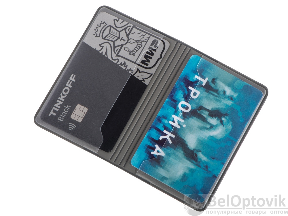 Футляр для кредитных карт в виде книжки с отделением для 2-х пластиковых карт надежно защищает лицевую и оборотную часть карты.