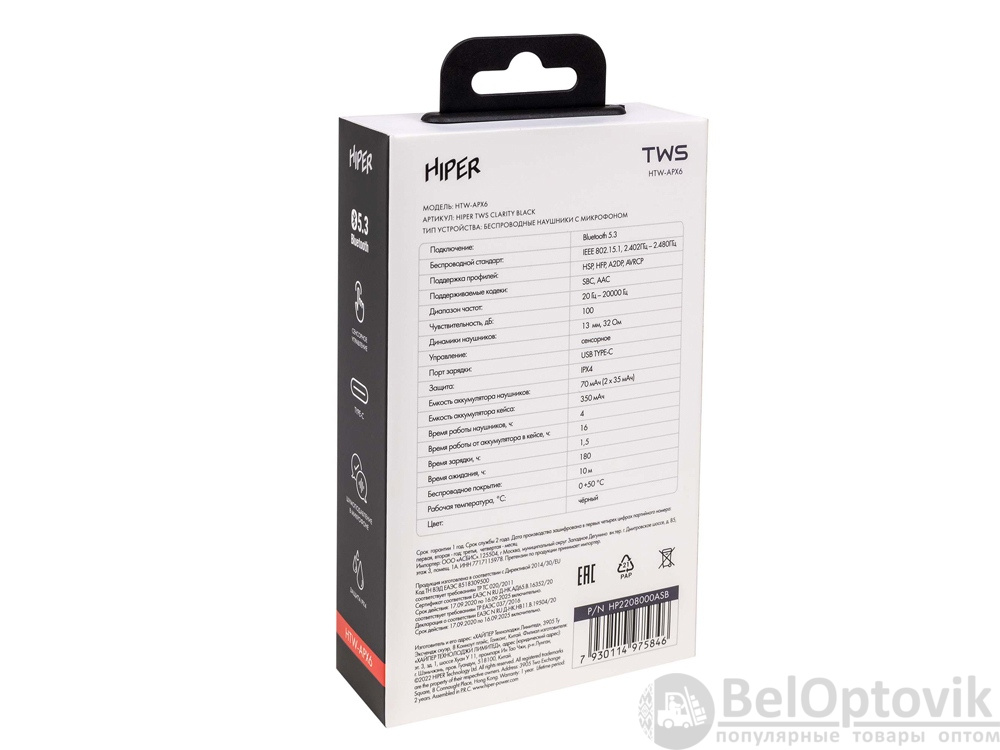 - Емкость элемента: кейс- 350 mAh, наушники- 70 mAh