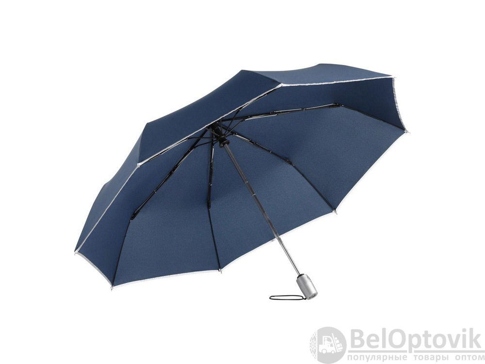 Зонт-автомат с кантом из светоотражающей ткани на куполе обеспечивает дополнительную безопасность в темное время суток. Чехол в комплекте