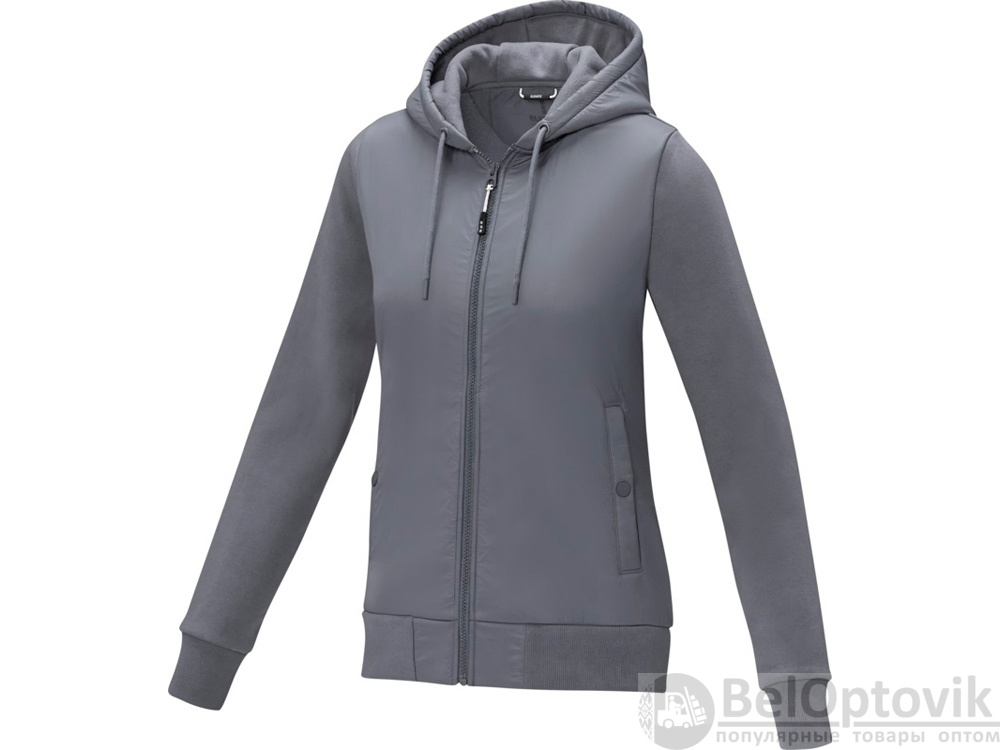 Открытая пластиковая застежка-молния по центру спереди. Карманы спереди. Внутренний карман. Эластичные манжеты и нижний край из гладкого трикотажа. Петля для подвешивания с фирменной символикой. Капюшон на кулиске. Внутренняя сторона покрыта ворсом. Фигурные швы и зауженная талия для идеальной посадки. Удобный бегунок застежки-молнии. Главный лейбл нанесен методом термоприклеивания, удобным для размещения рисунков на ткани.