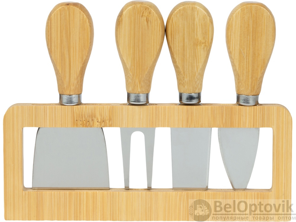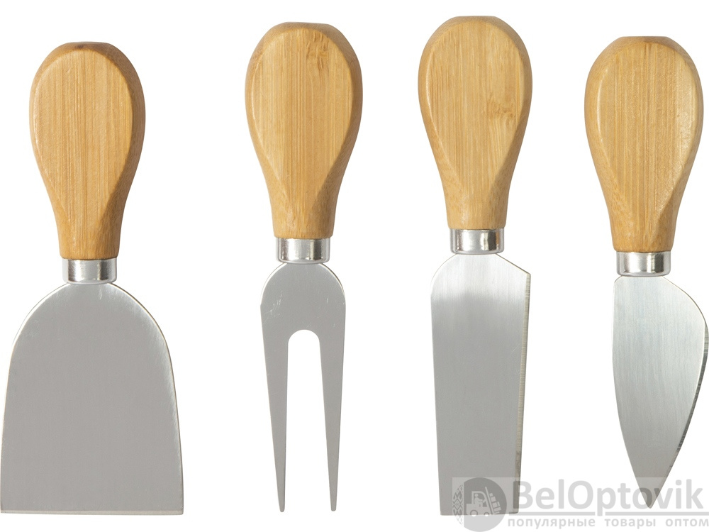 Листовидный нож или, как его еще называют, нож для пармезана, предназначен для твердых сортов сыра, которые практически невозможно порезать, скорее их нужно колоть. Нож-стамеска предназначен для очень мягких сыров, а широкая лопатка — для мягких и полутвердых. Двузубая вилка используется для сервировки, а также помогает при нарезании.