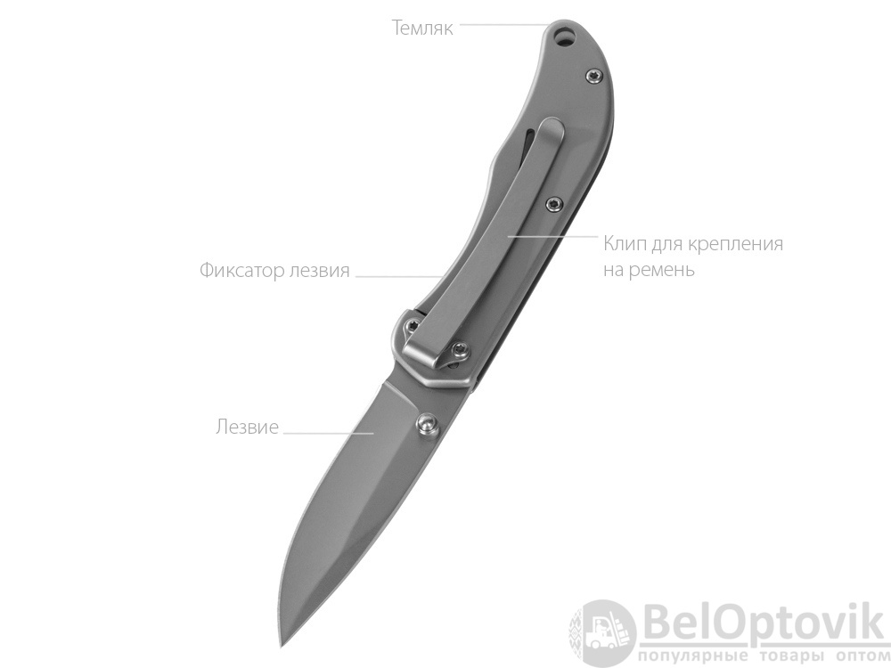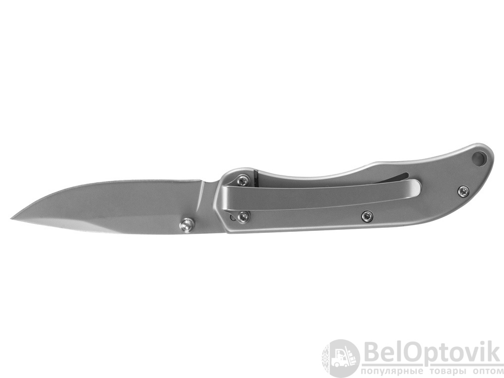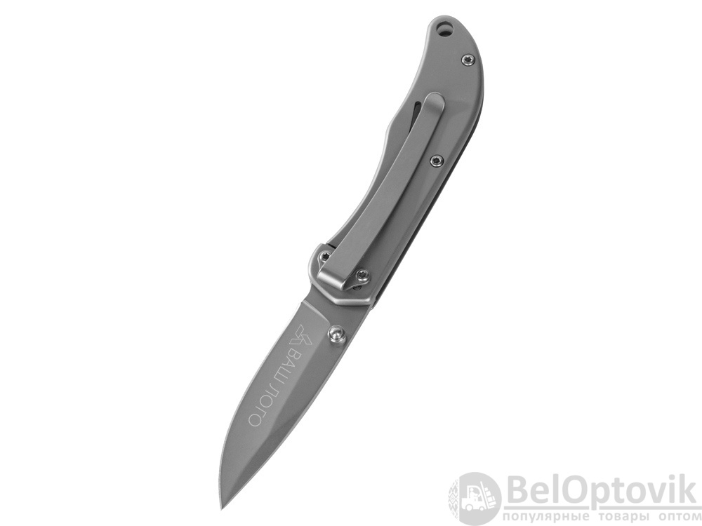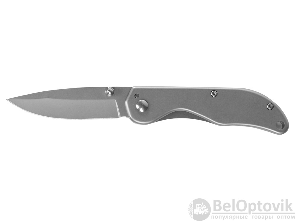 Складной нож бренда roq из нержавеющей высококачественной стали AISI 420. Матовый оттенок стали позволяет сделать заметное брендирование как на клинке, так и на рукояти.