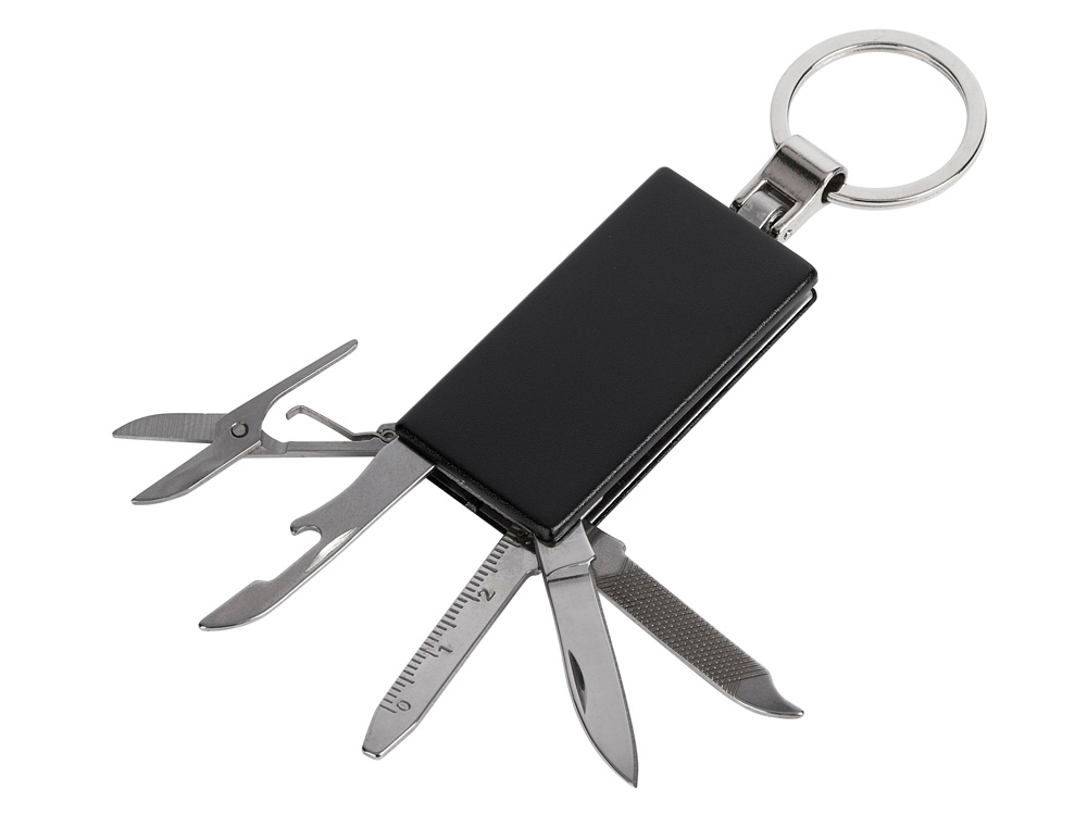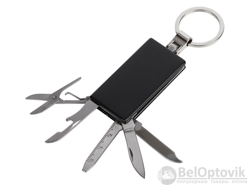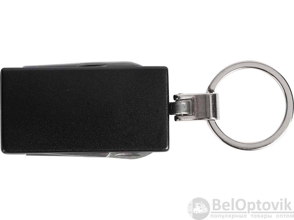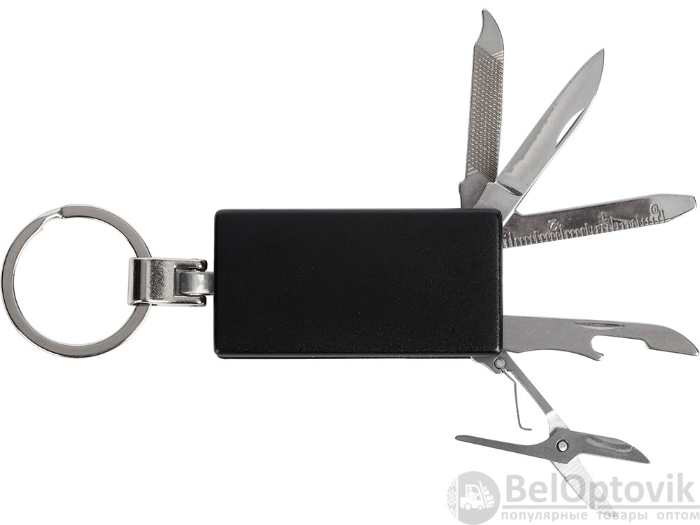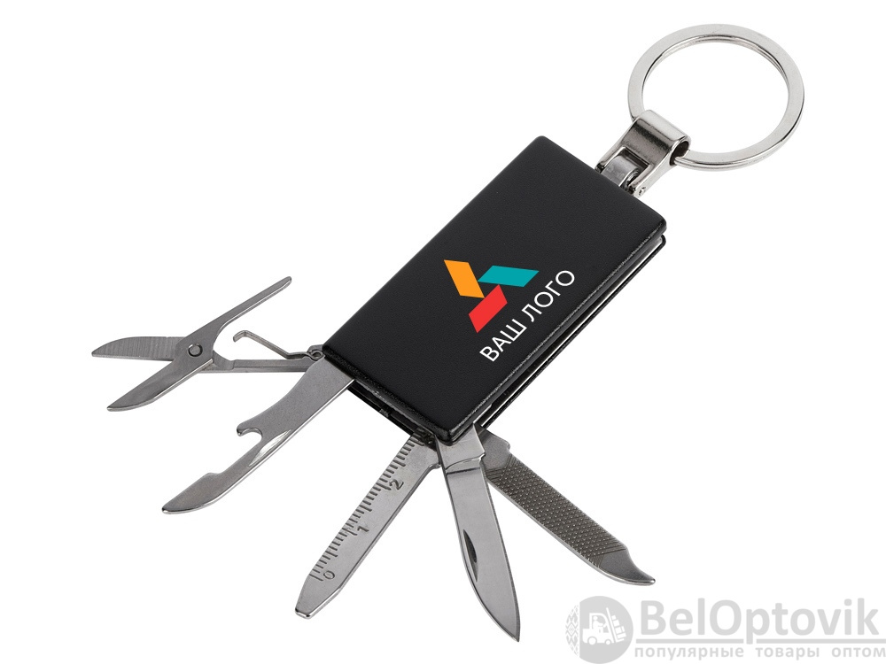 Брелок-мультитул на кольце в металлическом корпусе с заметным полем под нанесение.