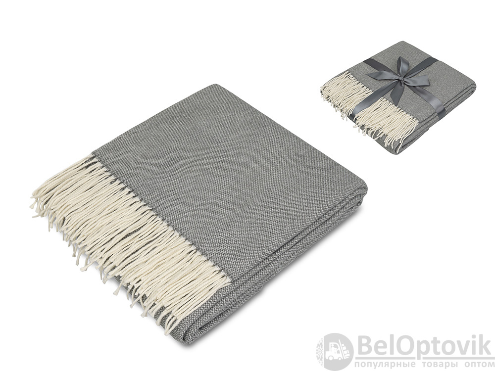 Большой размер этого мягкого плотного пледа позволяет использовать его как одеяло и как покрывало, украшающее интерьер. По бокам плед украшен бахромой. В комплекте идет упаковочная серая лента, на которой можно сделать нанесение.