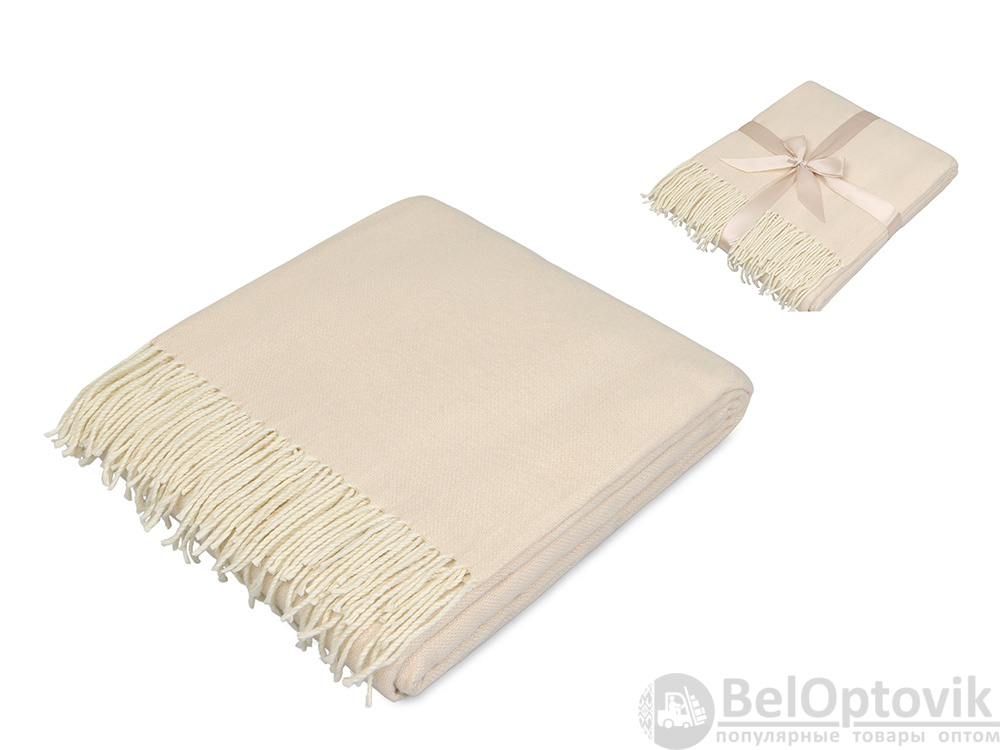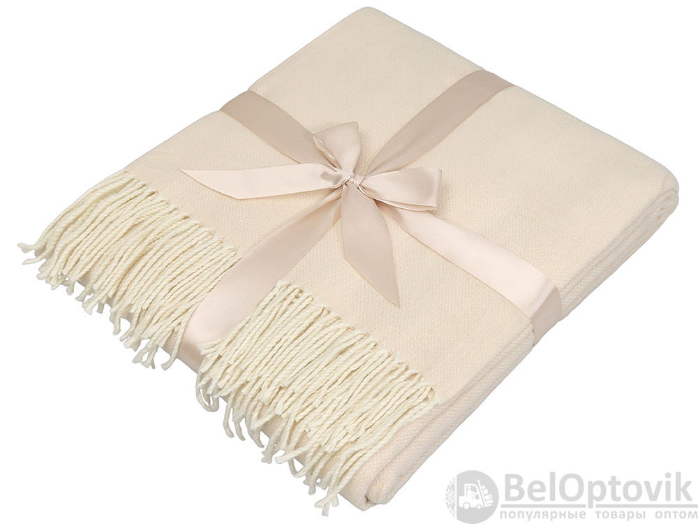 Большой размер этого мягкого плотного пледа позволяет использовать его как одеяло и как покрывало, украшающее интерьер. По бокам плед украшен бахромой. В комплекте идет упаковочная бежевая лента, на которой можно сделать нанесение.