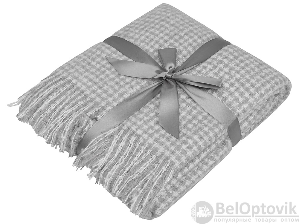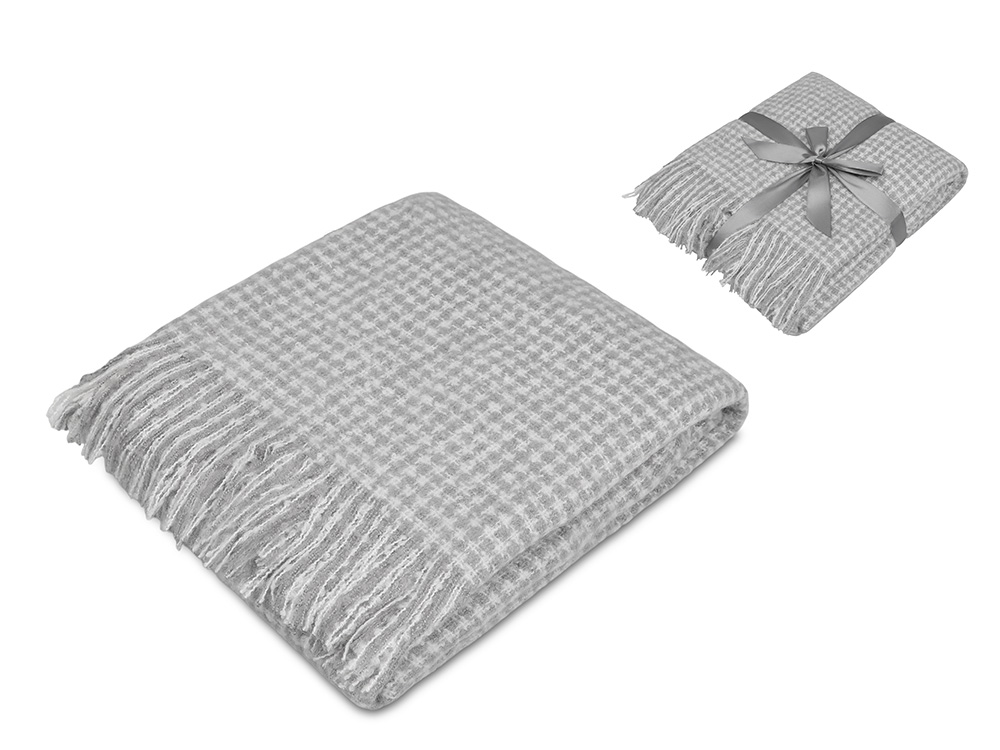 Супер мягкий и теплый плед согреет в холодный день и внесет уют в ваш интерьер. По бокам плед украшен бахромой. В комплекте серая лента, на которой можно нанести ваш логотип.