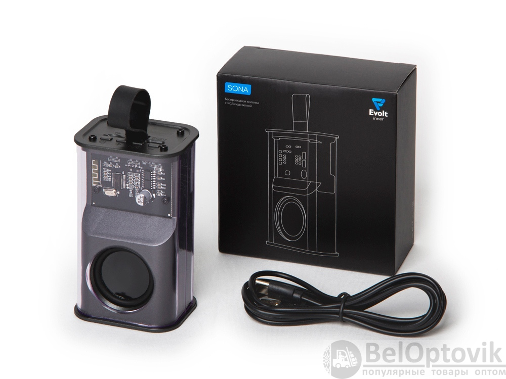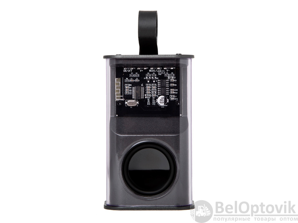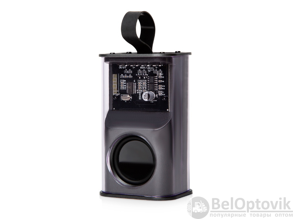 Колонка может работать от 3 до 5 часов на 1 заряде. Силиконовый держатель поможет подвесить колонку на карабин и закрепить на любой сумке, не занимая места внутри. Корпус выполнен из прозрачного пластика. Поставляется в фирменной упаковке.