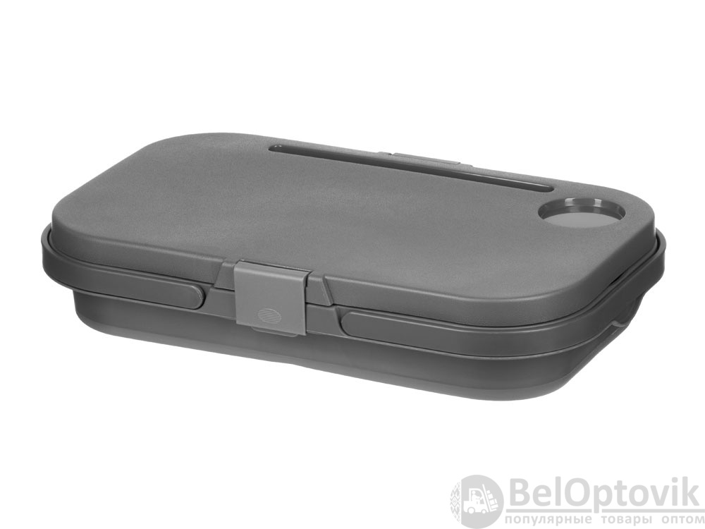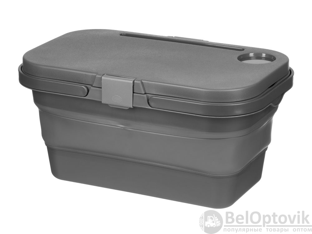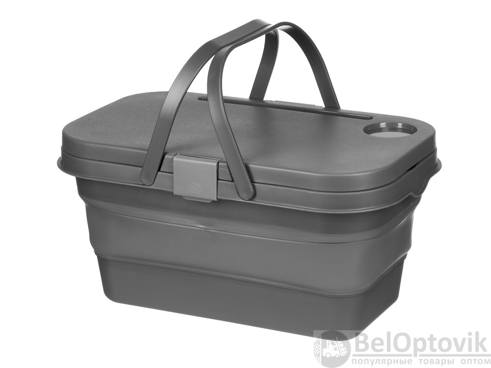 Крышка этой корзинки для пикника превращается в удобный столик буквально по щелчку пальцев: для этого нужно просто снять ее и разложить металлические ножки. На этом магия корзинки не заканчивается — силиконовый корпус складывается, что очень удобно, когда пикник закончен, и все содержимое съедено.