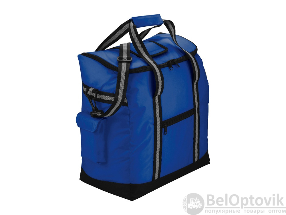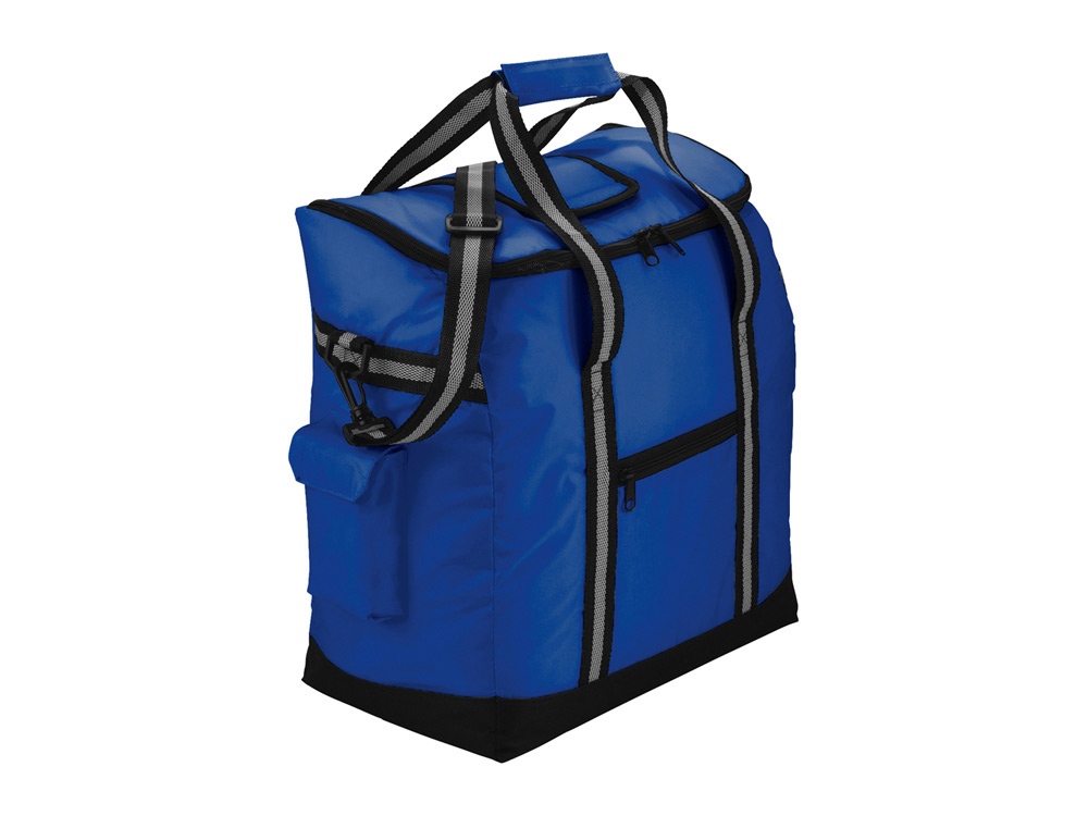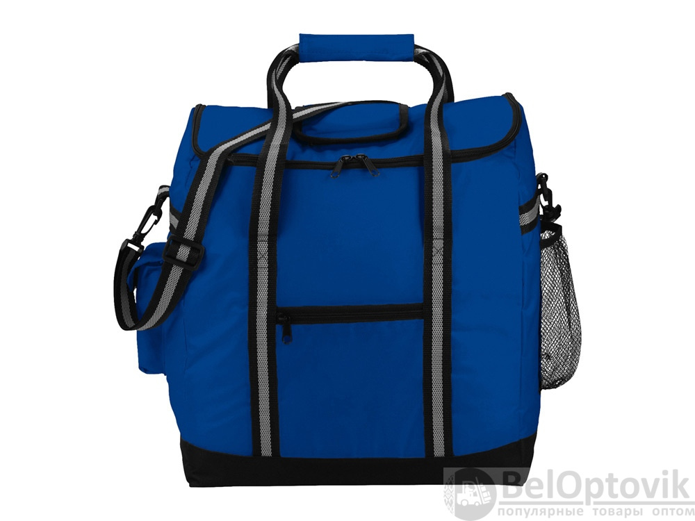 Сумка-холодильник имеет основное отделение на молнии. Передний карман на молнии. Боковой сетчатый карман. Боковой карман с застежкой на липучке. Две усиленные ручки. Съемный регулируемый плечевой ремень.